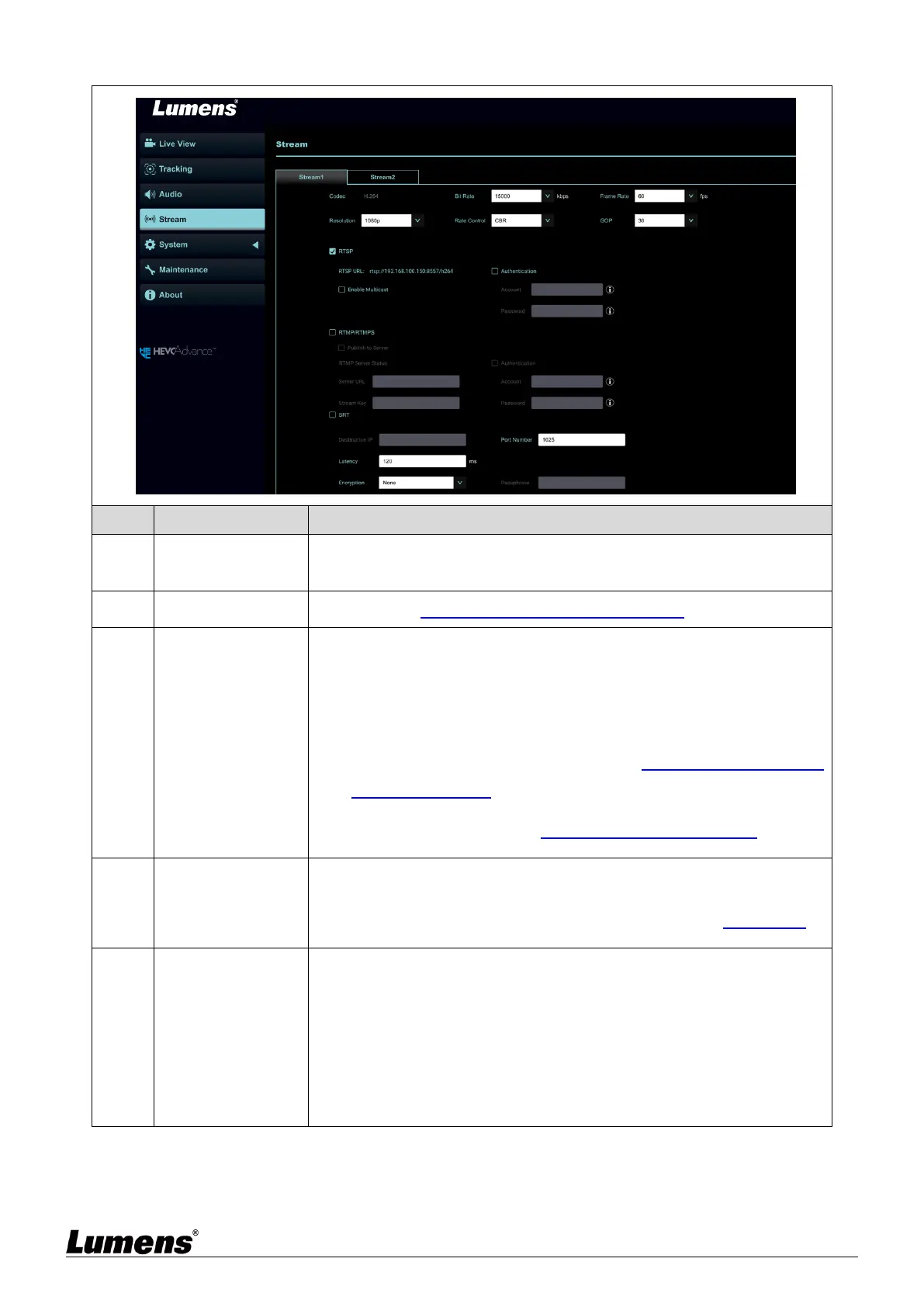 Please refer to 5.2.6.1 Streaming Parameter Setting for relevant settings