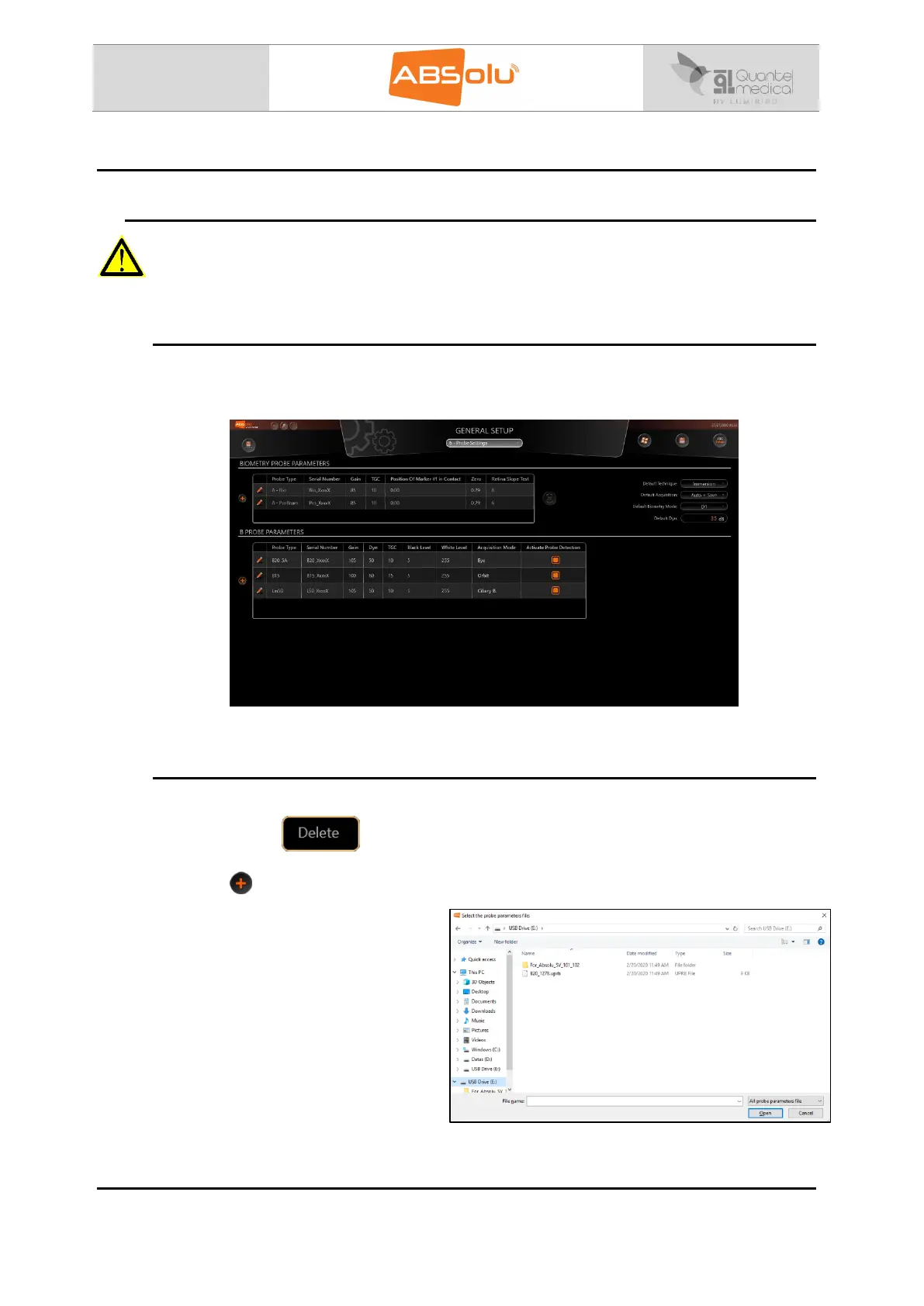 10.1.2. Delete or add a new standardized or regular biometry probe