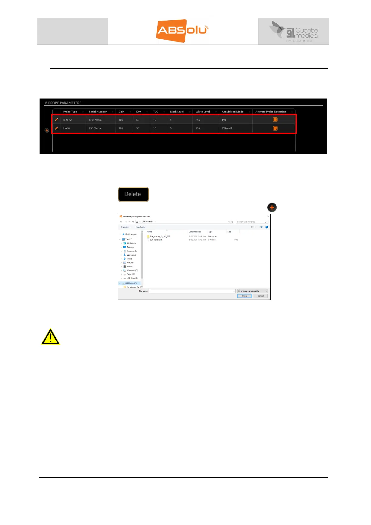Select the file (with the probe’s serial number that has to be installed) and select: “Open”.