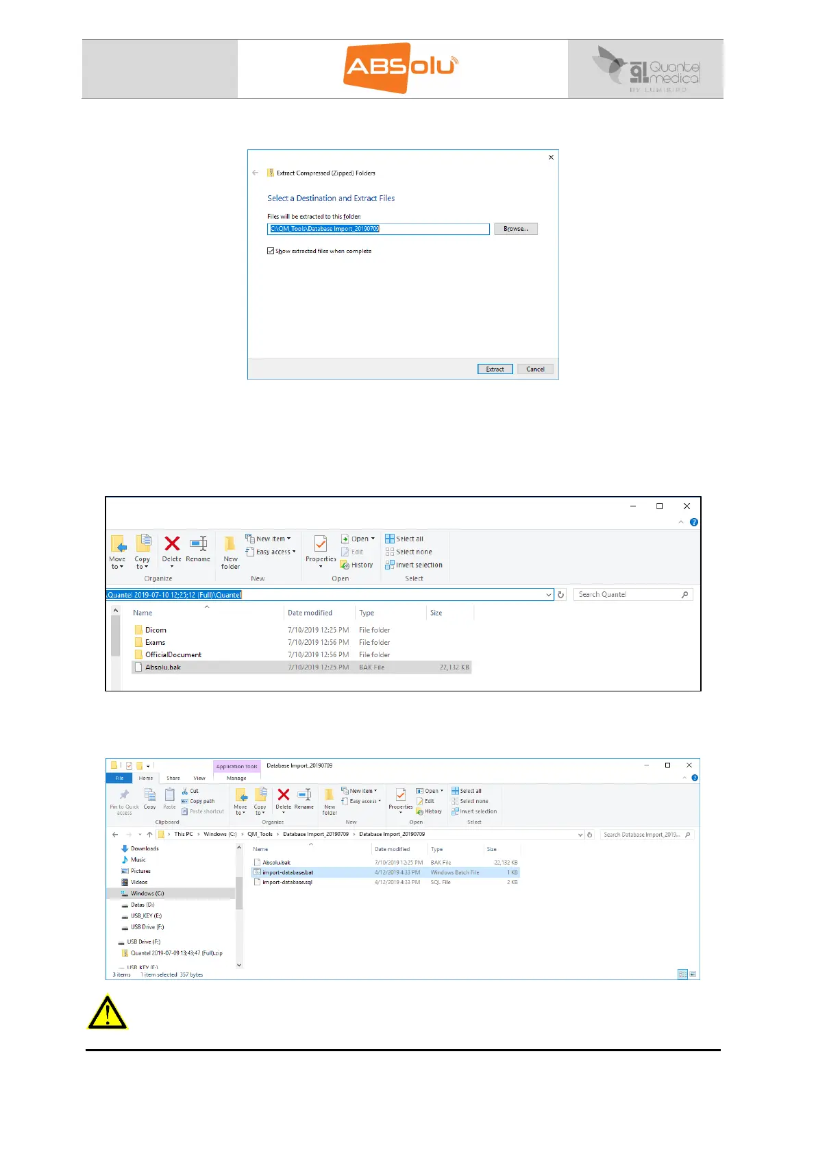 Import_20190709\Database Import_20190709” directory of the “Destination ABSolu”: