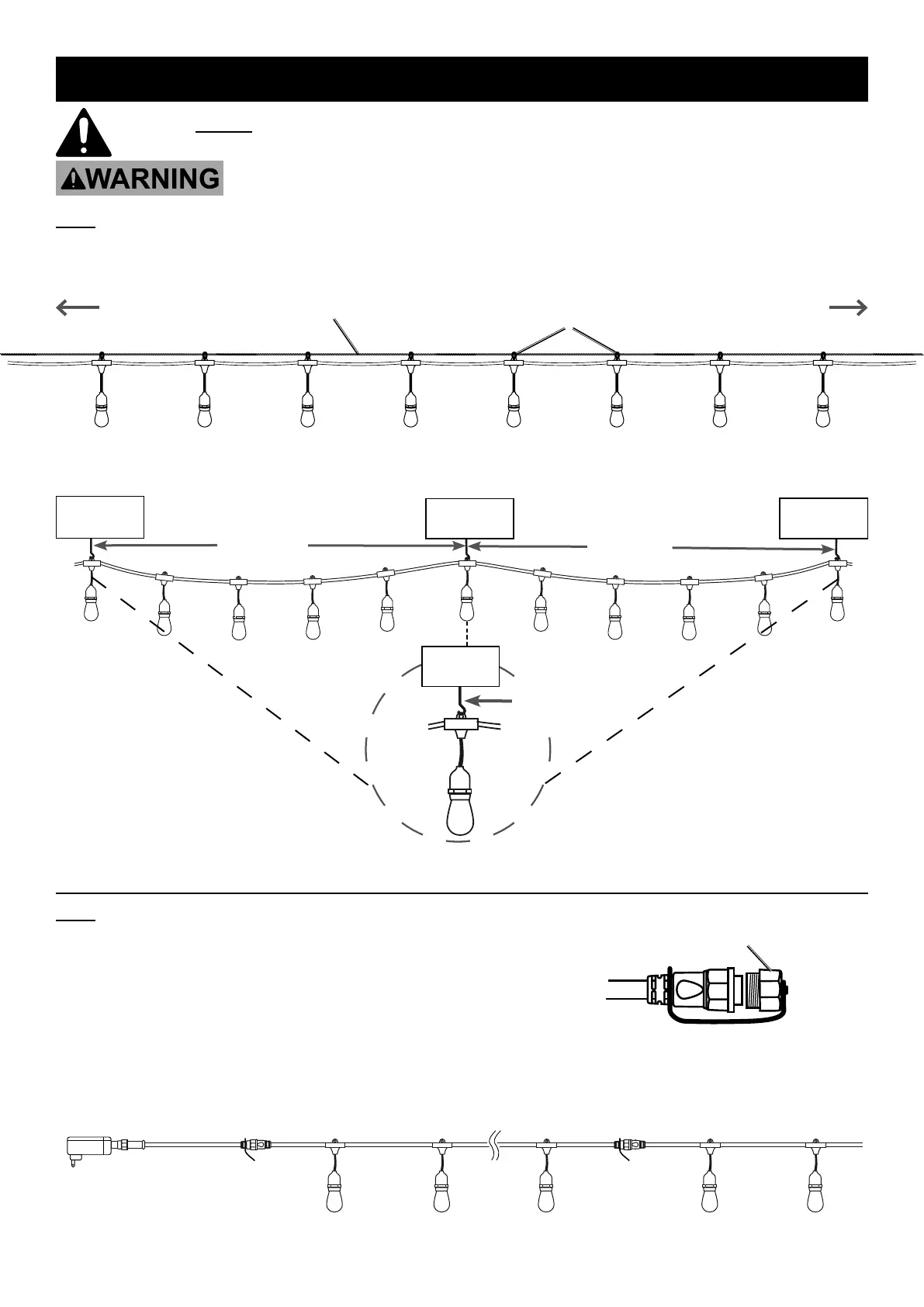 Note: Do not connect Power Cord / Controller until all String Lights are connected and secured.