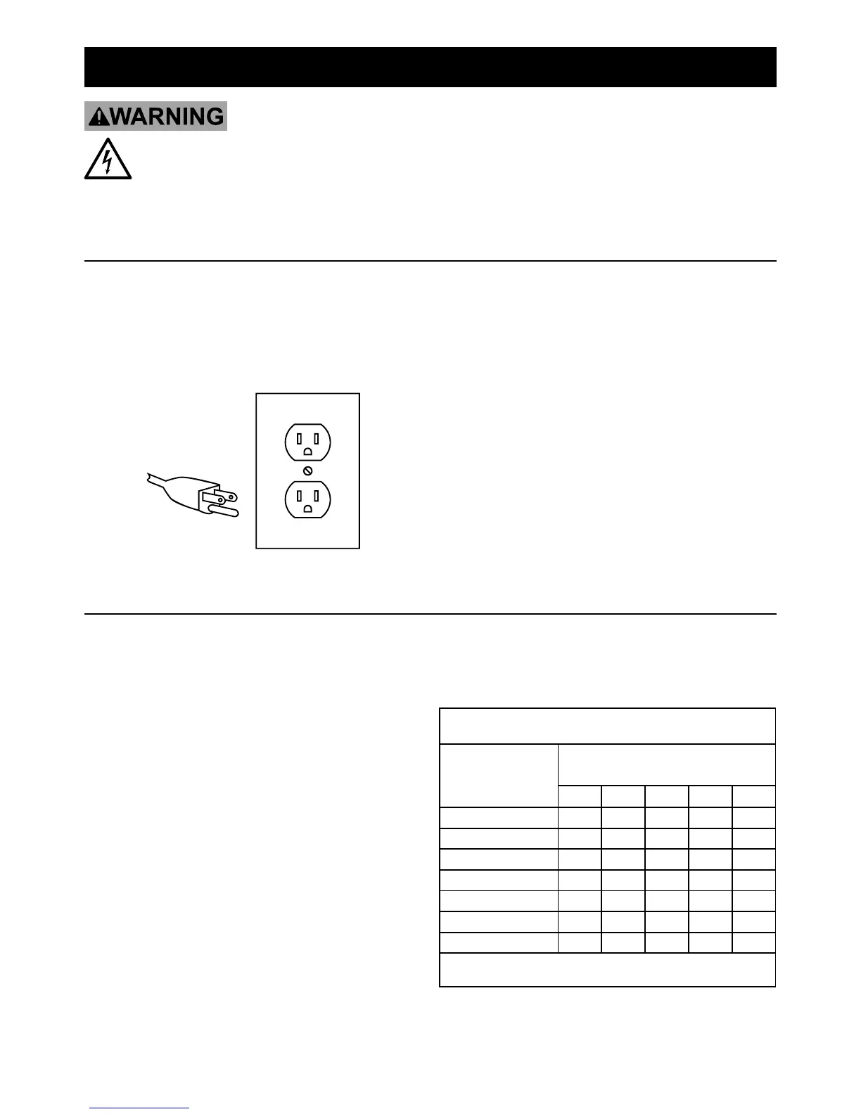 facility before use. If the plug will not fit the outlet, have a proper outlet installed by a qualified electrician.