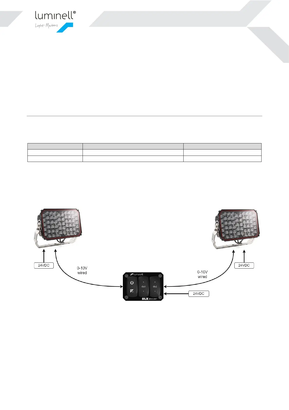 Figure 1 Example setup of a CP2 and two BLX D controlled with wired 0-10V