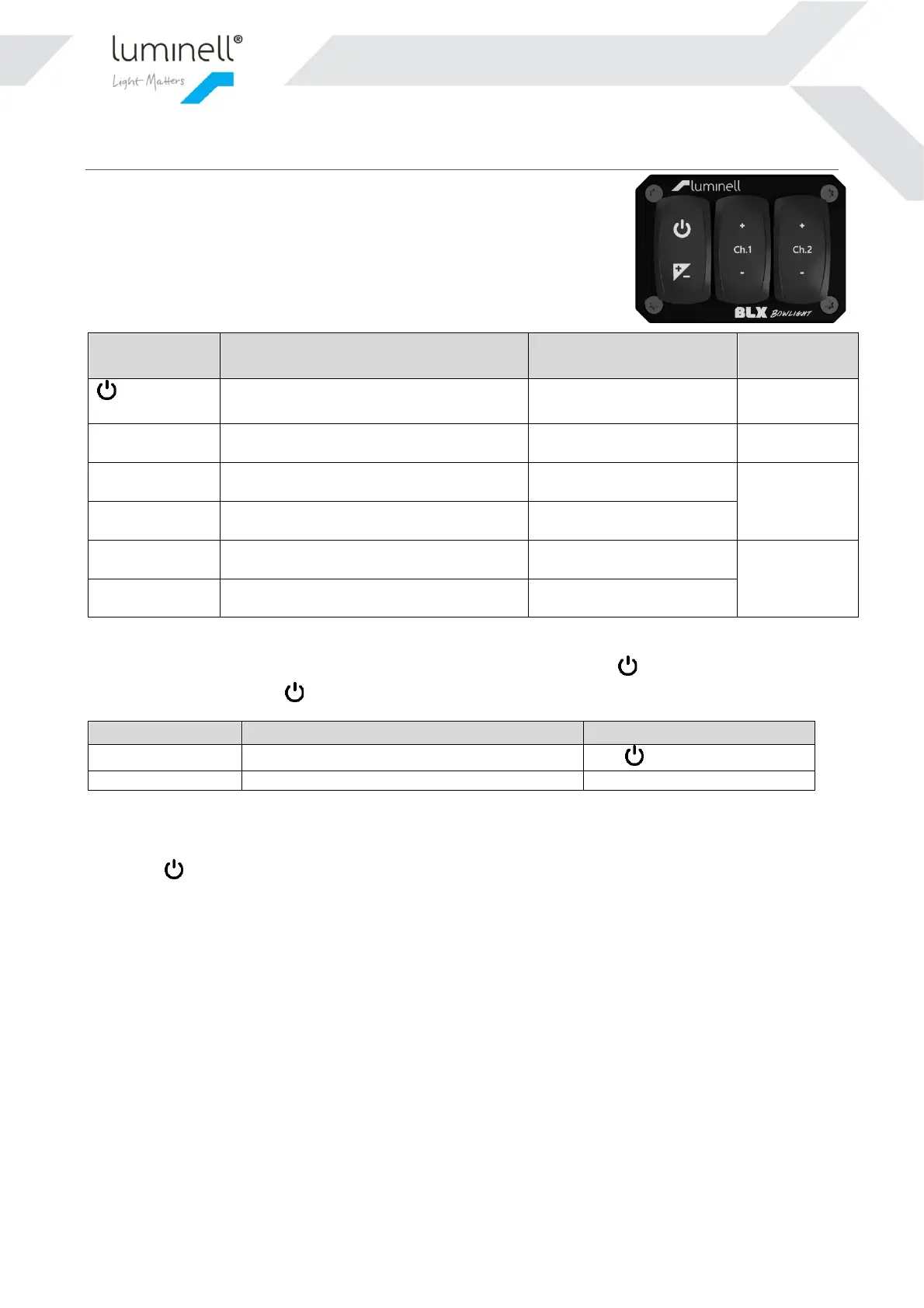 To control the connected luminaires light level, the Control panel has a main switch , and two independent light