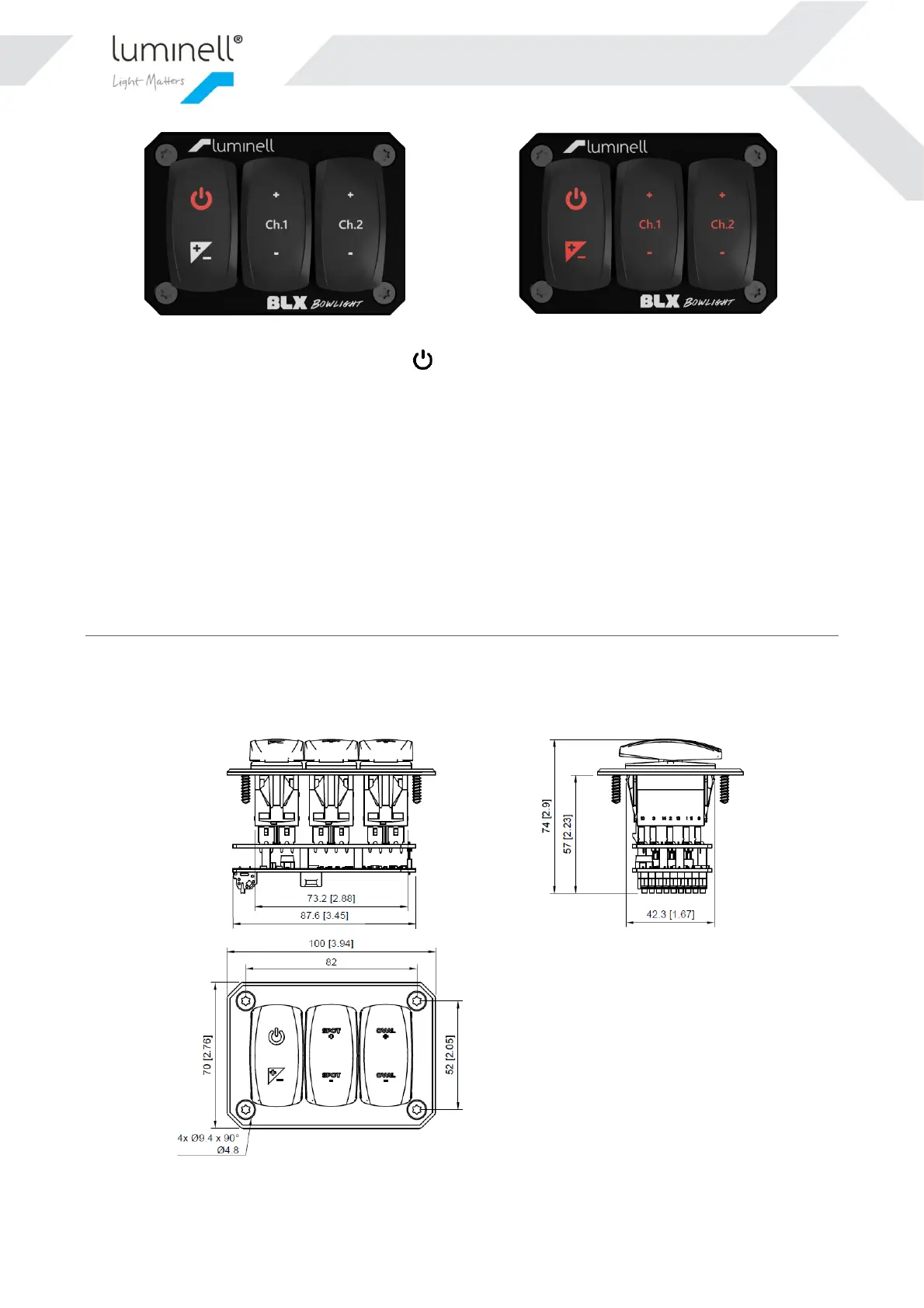 7.1 DIMENSIONS CP2 CONTROL PANEL
