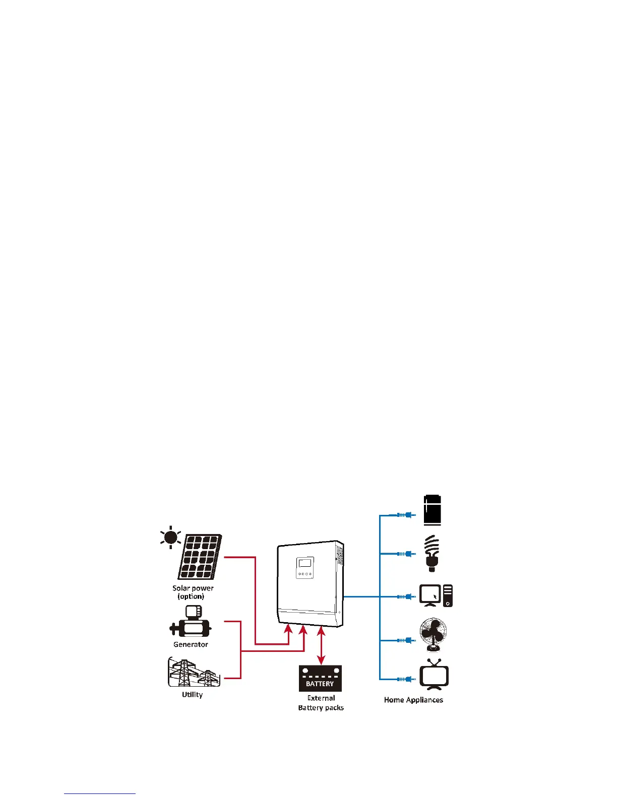 The following illustration shows basic application for this inverter/charger. It also includes following devices to