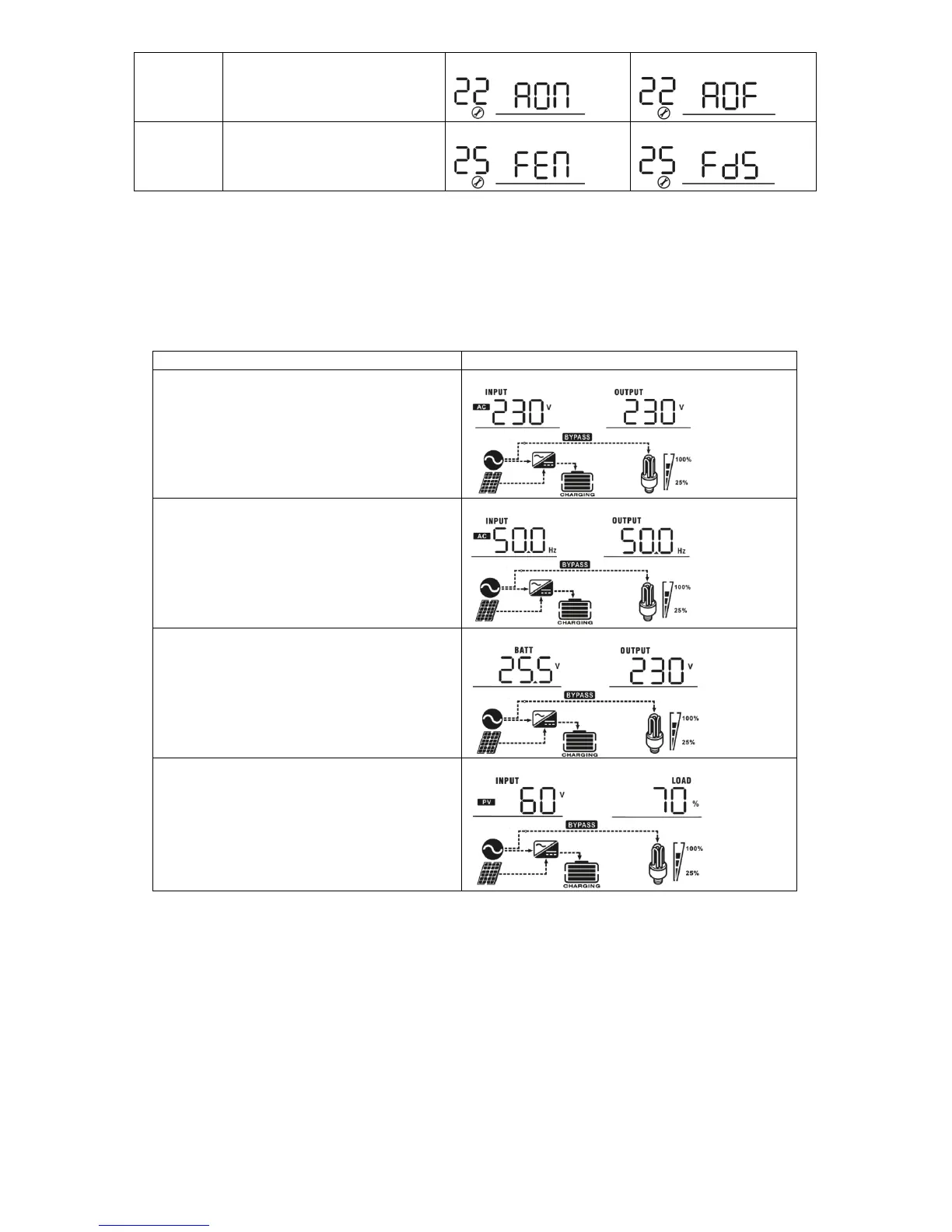 information is switched as below order: input voltage, input frequency, battery voltage, PV voltage,
