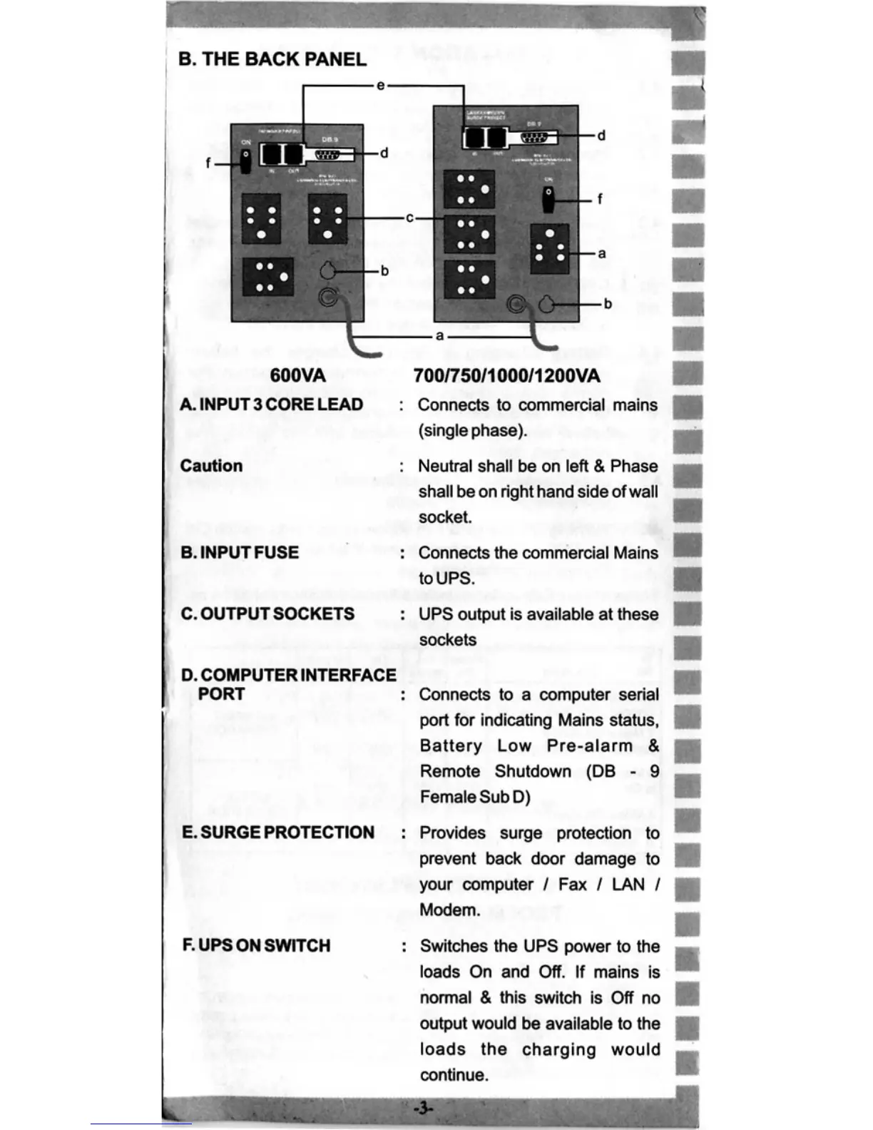 Luminous 600VA - PHYSICAL DESCRIPTION (Continued); Back Panel Ports and Controls