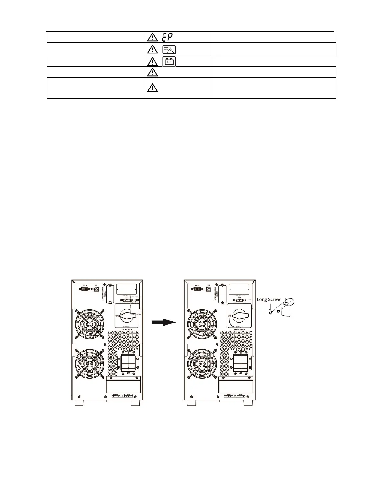 Warning: In maintenance bypass mode, load is connected to the mains supply. Appropriate