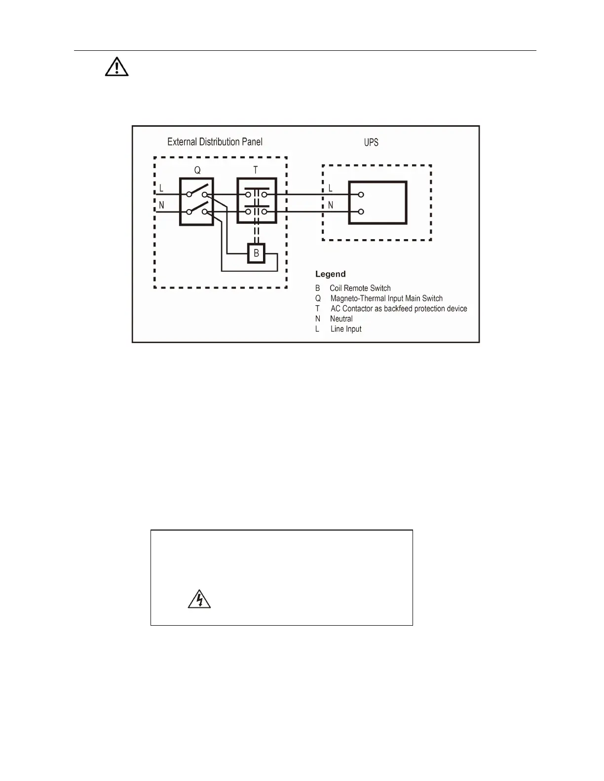 • There is no standard backfeed protection inside the UPS, hence please isolate the UPS before working