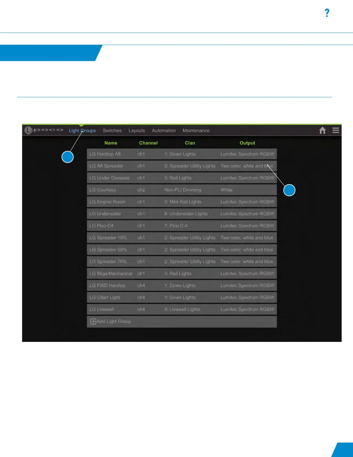 2. Select a row to edit or select “+ Add New Item” to create a new “Light Group”.