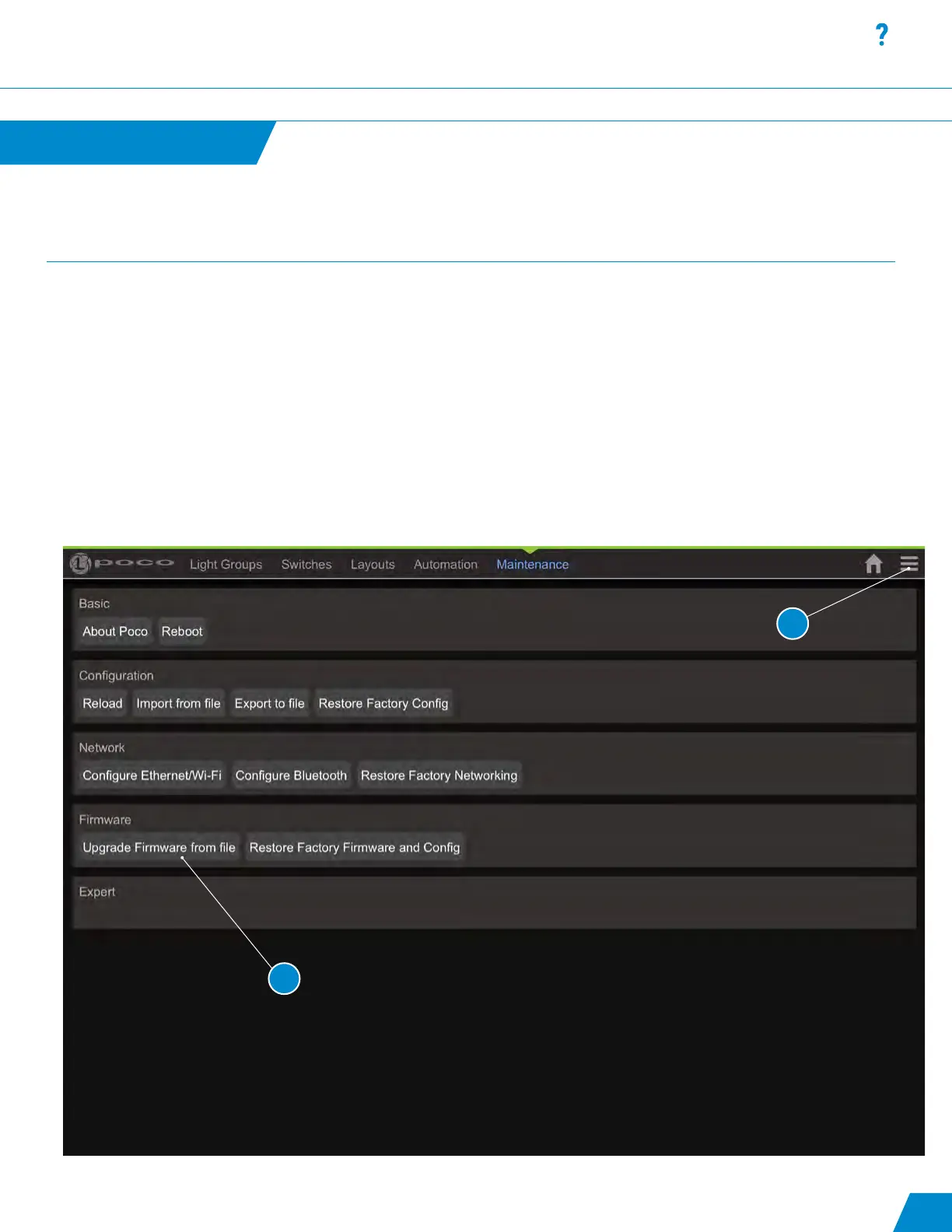 • Select “Upgrade Firmware from File” under the Maintenance / Users page within the conguration of Poco (#2).