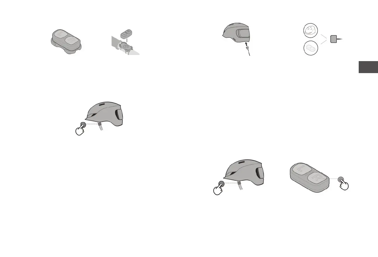 3) Varmista, että kaukosäädin ja kypärä ovat vierekkäin. Paina yhtä kaukosää-
