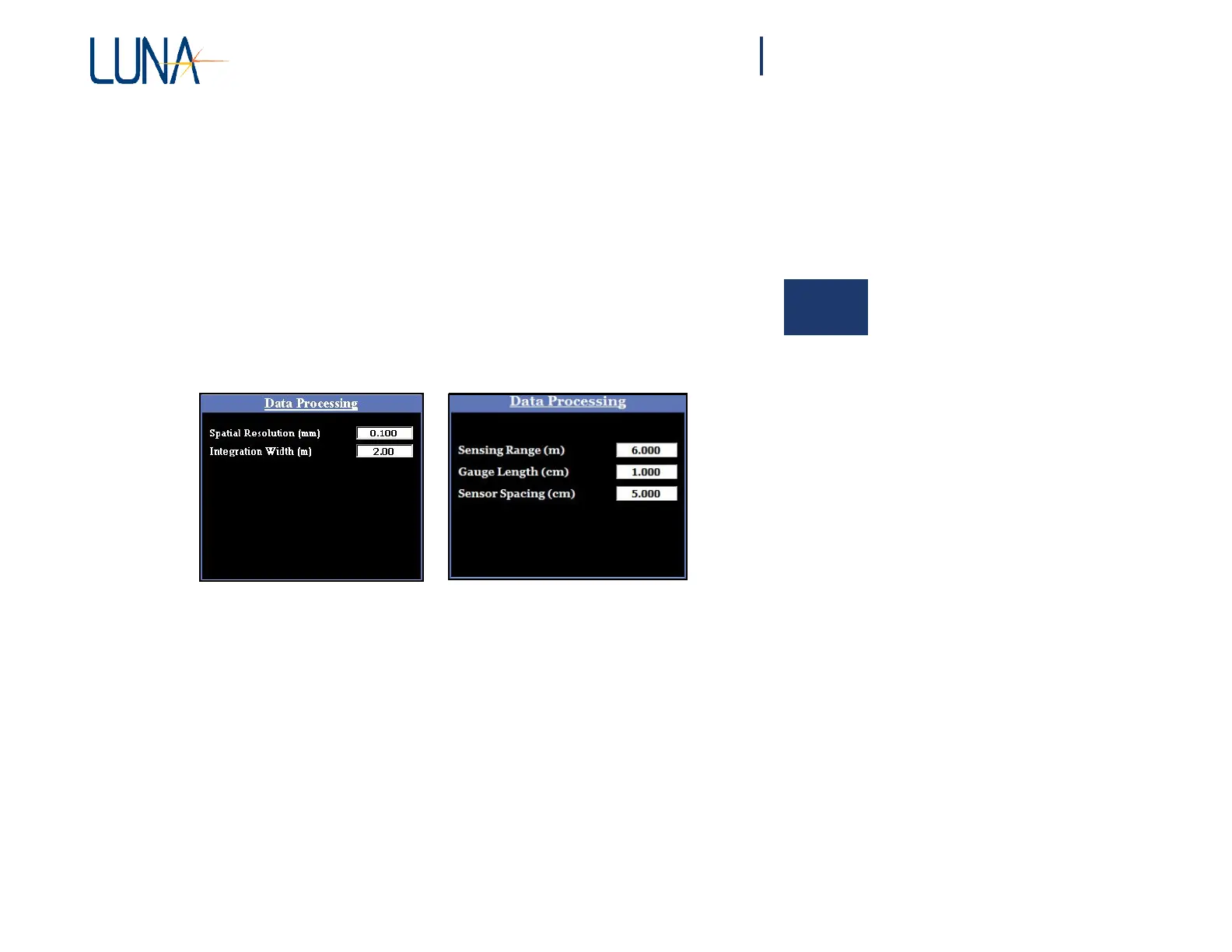 (checked), the Data Processing area changes to allow setting of sensing parameters,