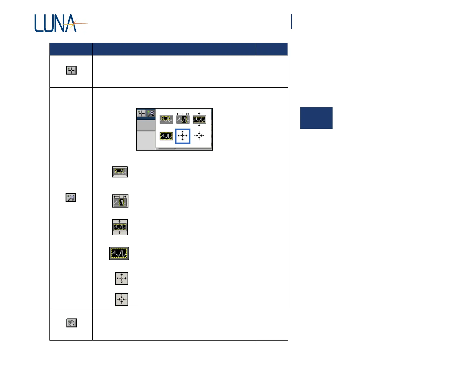 Allows the user to select from the following zoom tools that appear