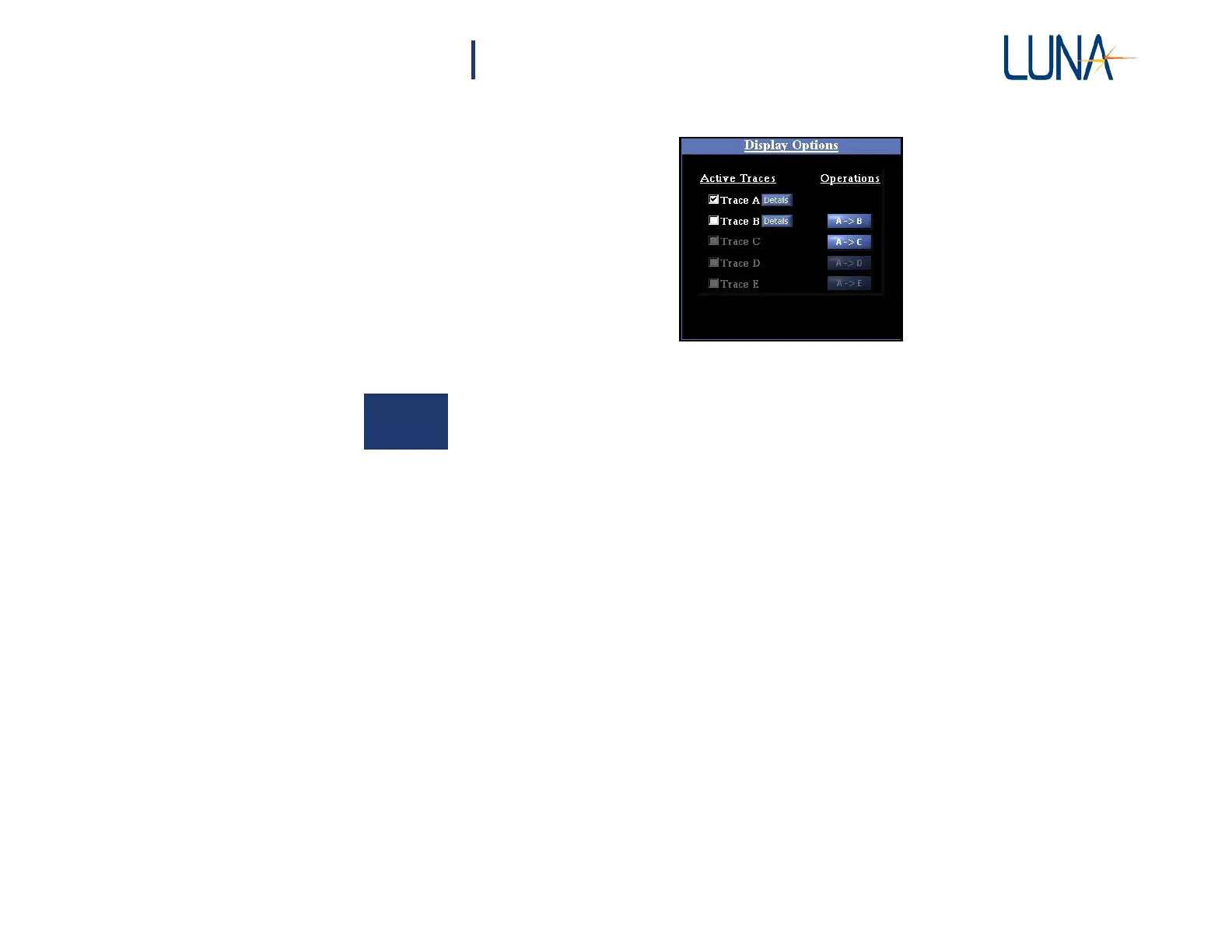 example, data has been loaded into Traces A and B, but only Trace A is being