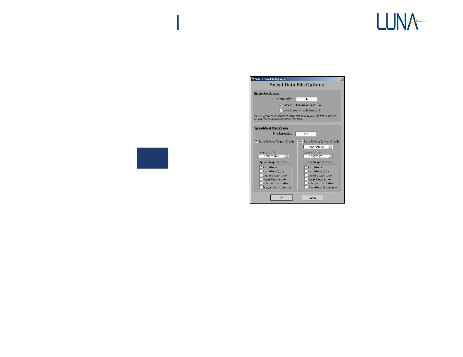Measurement File box is checked. If Save Lower Graph Segment is