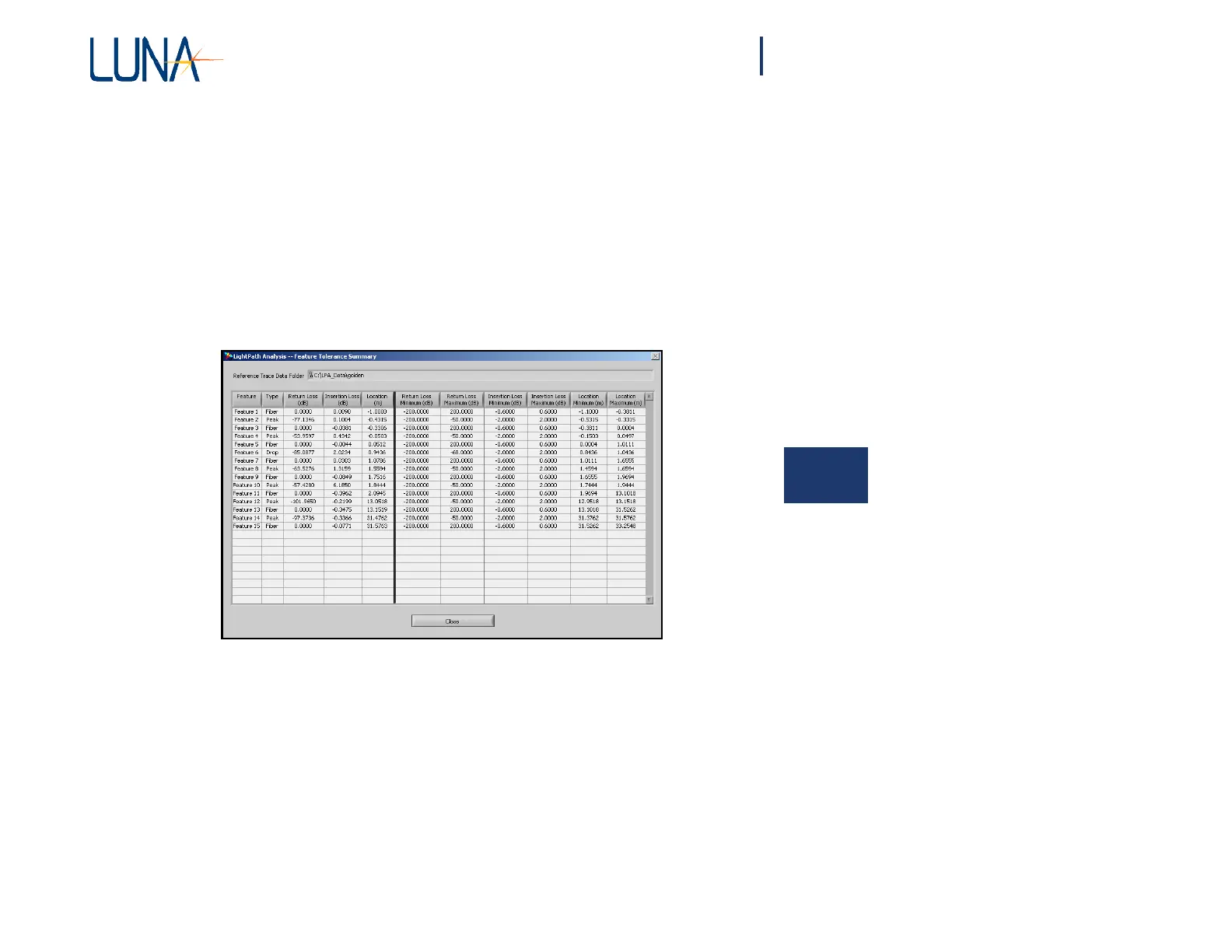 Click the Close button to exit the Feature Tolerance Summary window.