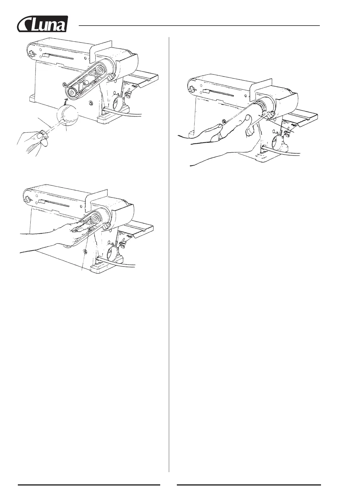 4. Spænd skruerne let. For at spænde remmen tryk motorskive