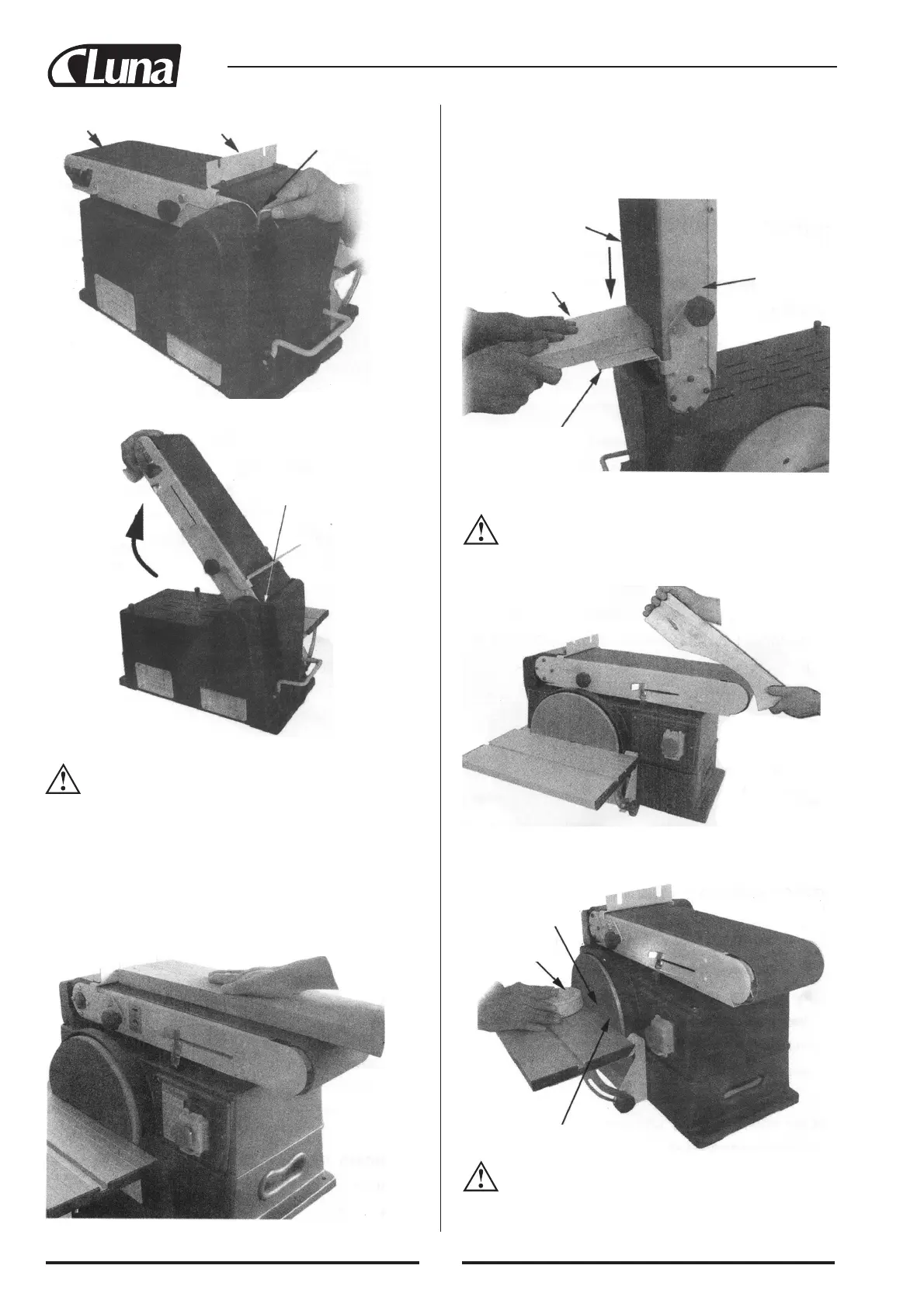 händer men se till att inte komma för nära slipbandet med fingrar-