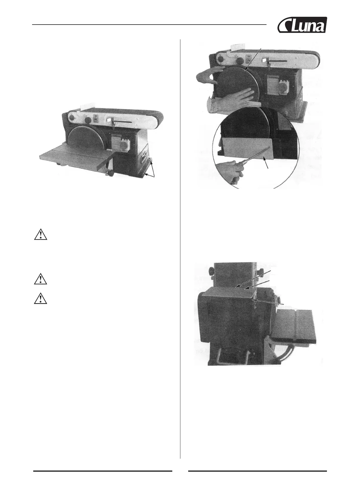 šlifavimo juostos/šlifavimo disko darbo mašina, ją sumontavus