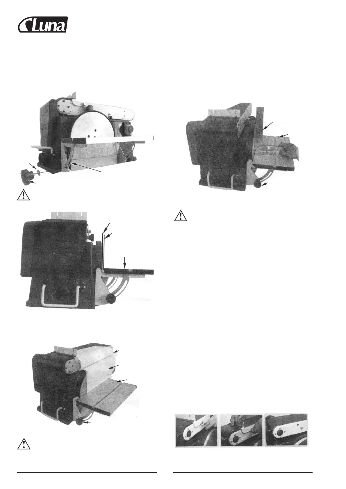1. Dviejų fiksavimo rankenų nuėmimas nuo šlifavimo juostos