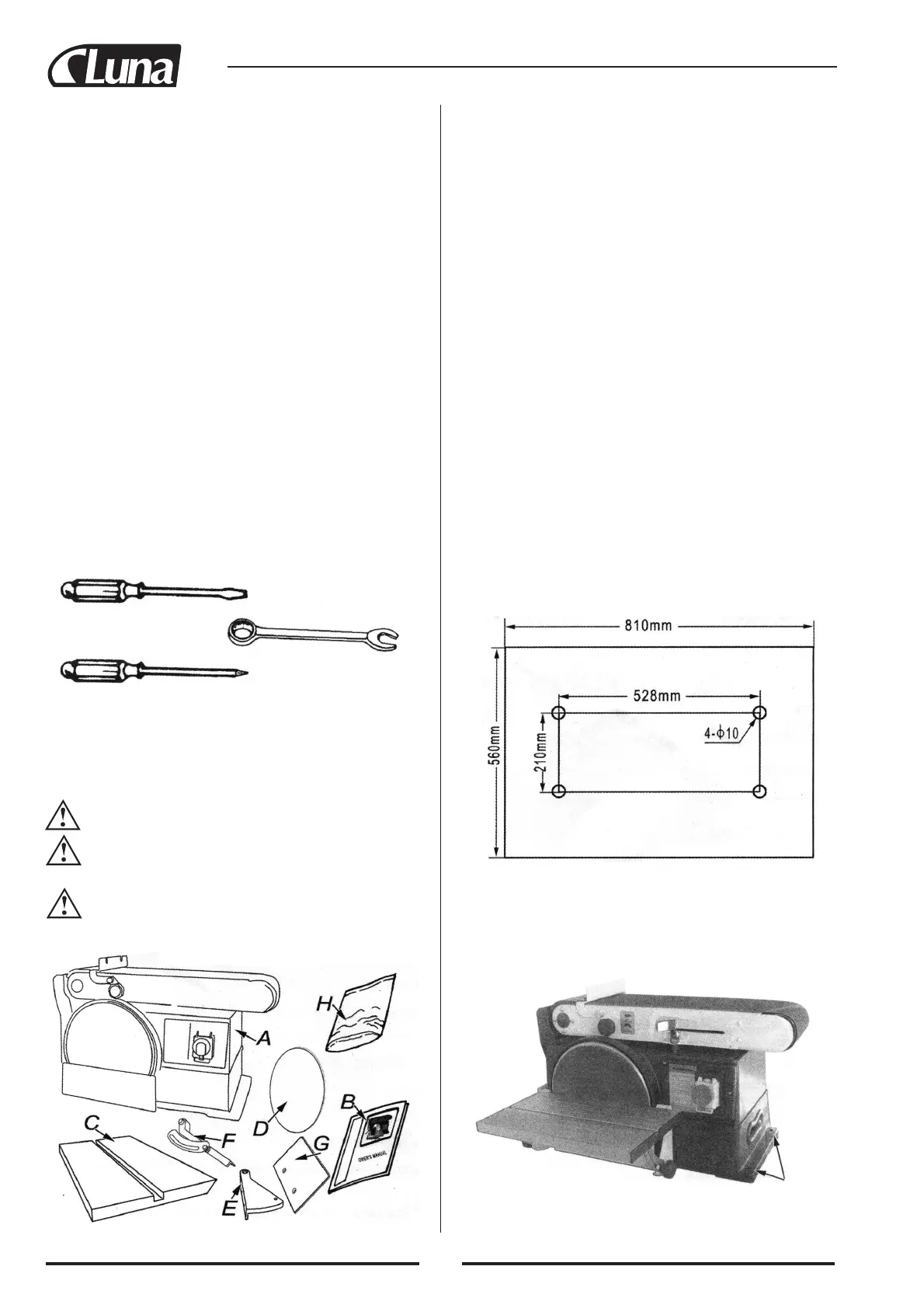 1. Slipmaskinen måste fästas ordentligt med M8-skruvar och