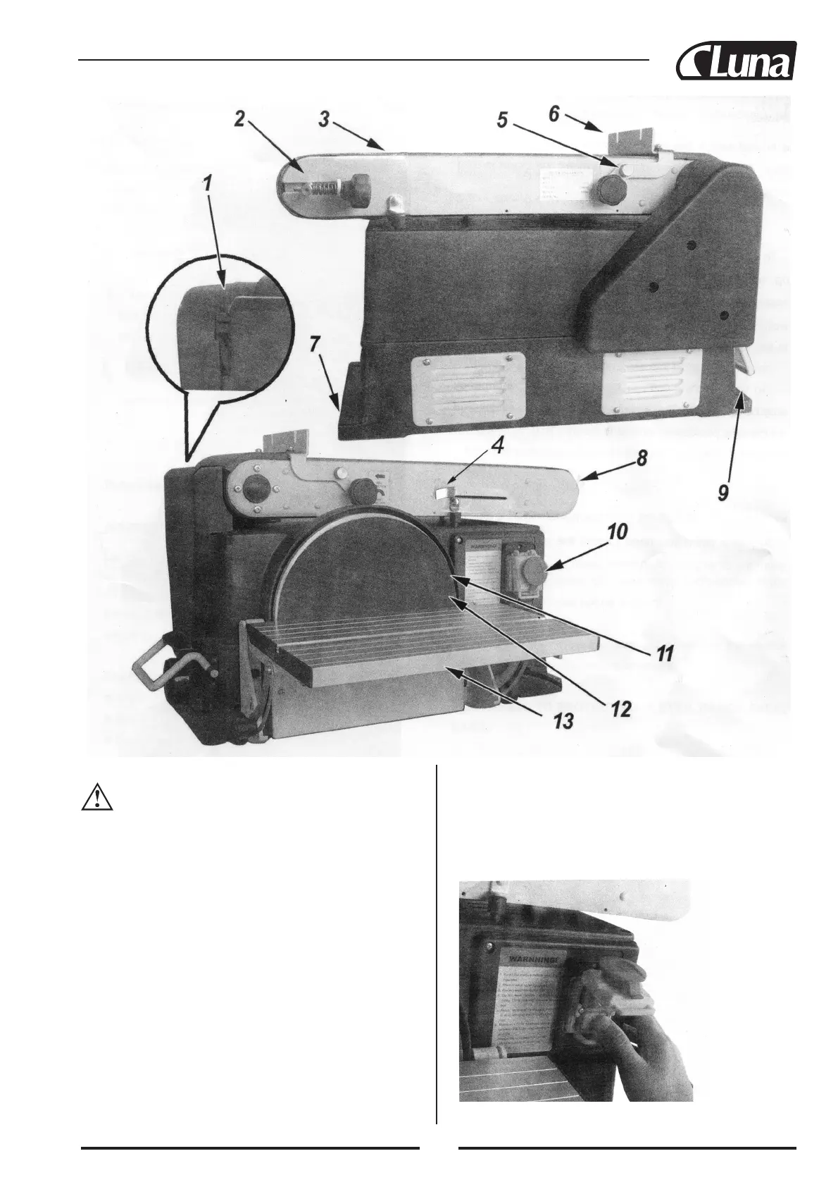 1. För att starta slipmaskinen, fäll upp nödstoppskåpan och håll