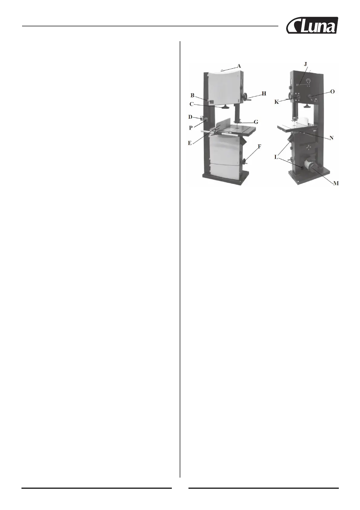 F. handwiel voor riemspanning en snelheidswijziging