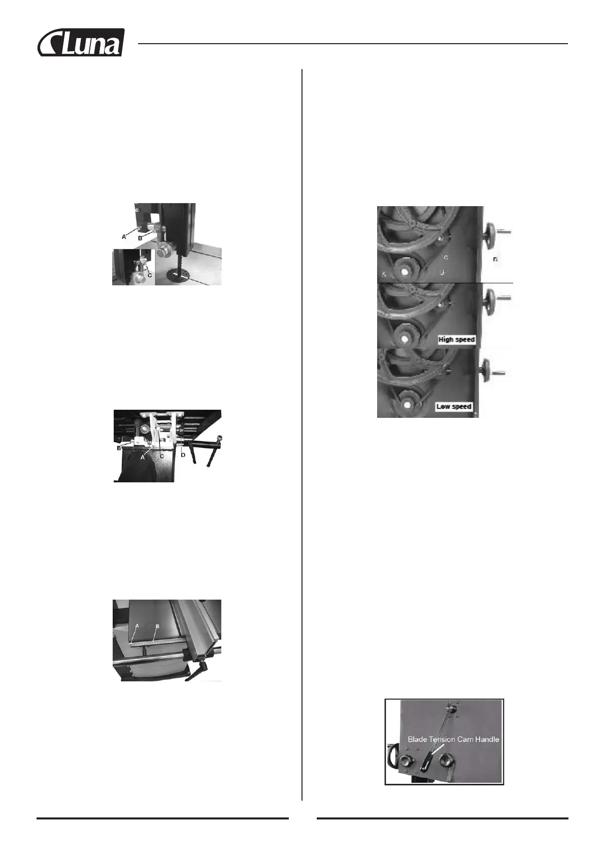 c) Løsne bladets spenning ved å rotere eksenterhåndtaket for bladspenning