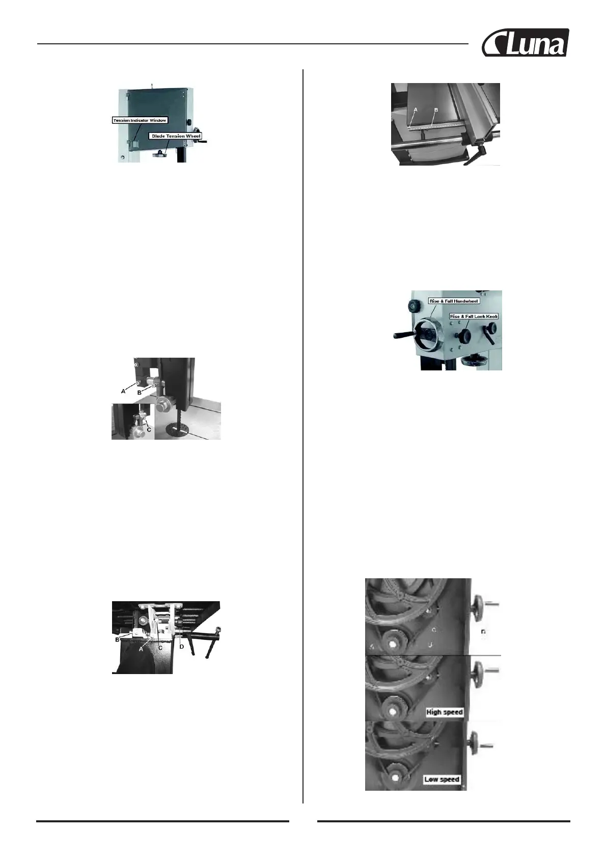 ustalić pozycję obu rolek względem piły taśmowej, przez poluzowanie
