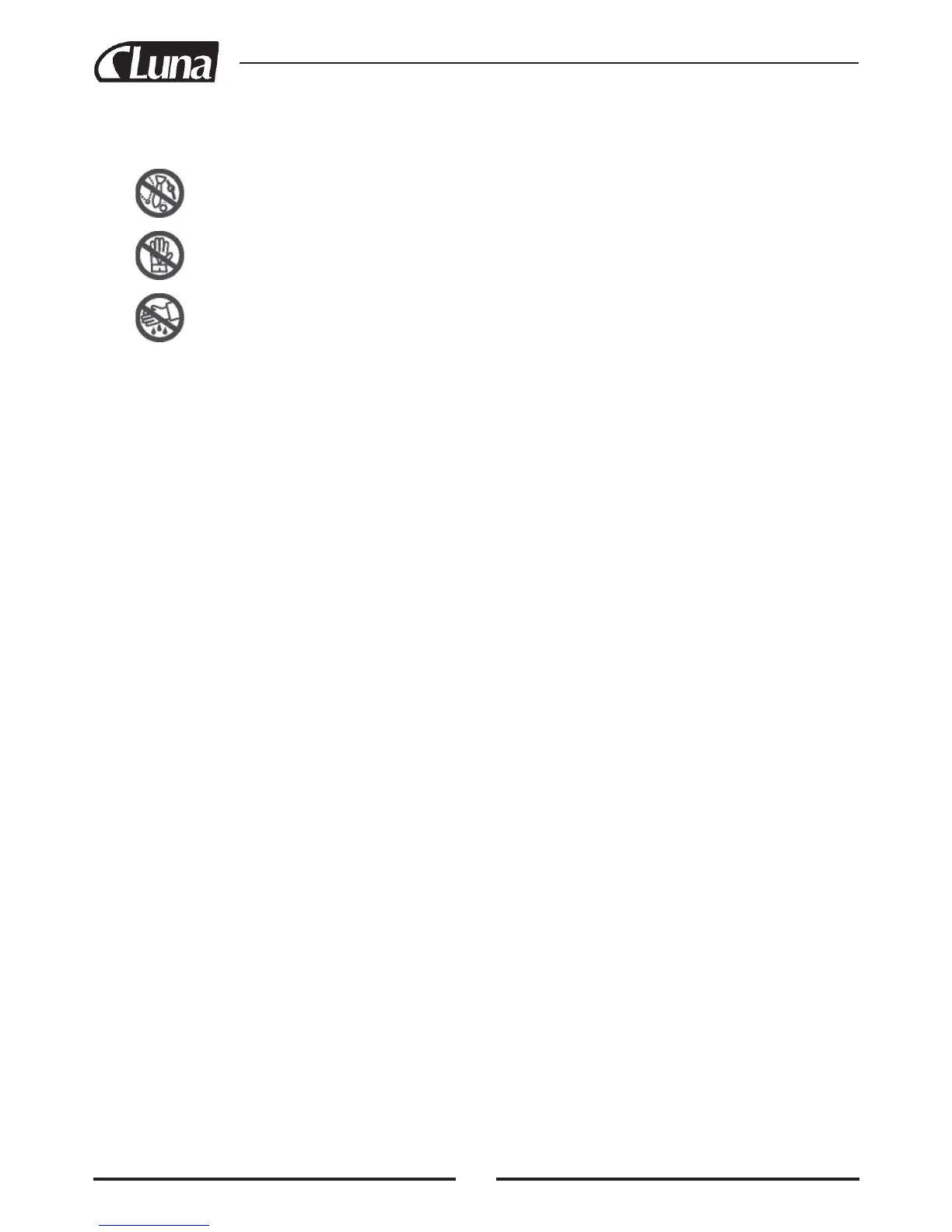 DE Keine Handschuhe erlaubt / DK Forbud mod at anvende handsker / EE Kandmine on keelatud / ES Está prohibido utilizar guantes/ FI Käsinelden
