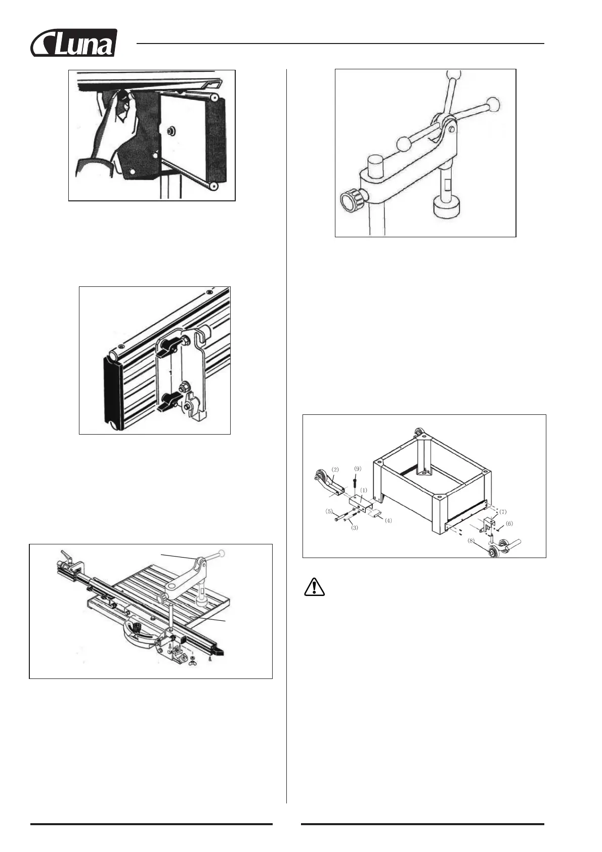 4. Nostipriniet aizmugurējo ritentiņu rāmi (7) pie darba statnes ar