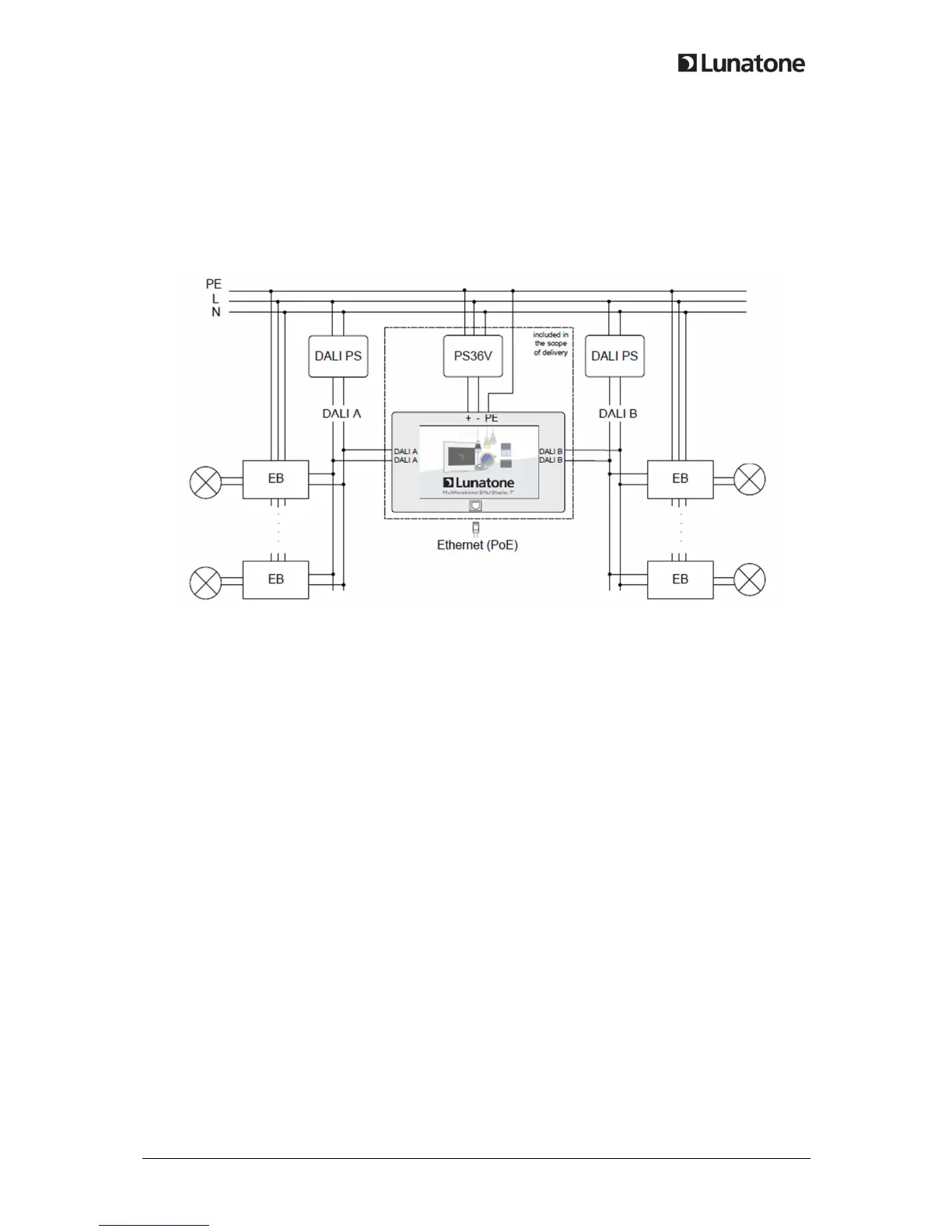 power supply (e.g. DALI PS) has to be installed for each DALI-line. The DC power supply (PS36V),