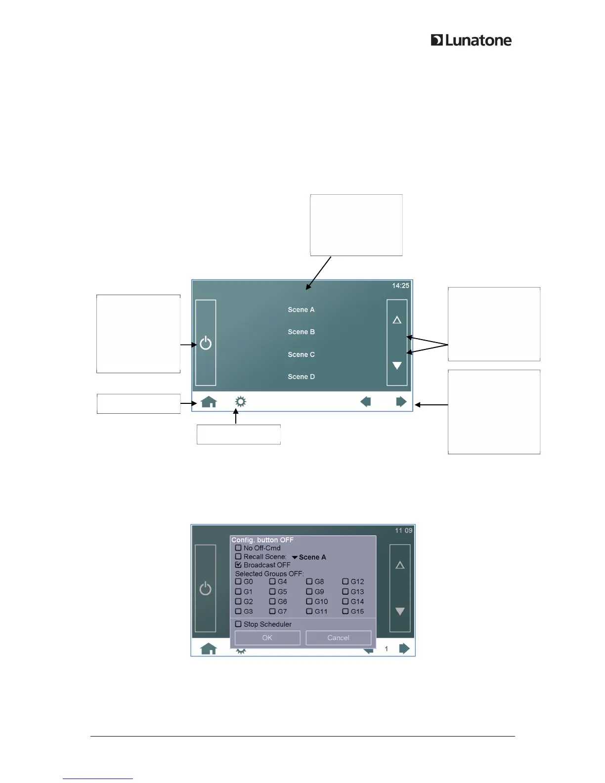 be selected to be stopped as well as a scene can be recalled by the OFF-Button