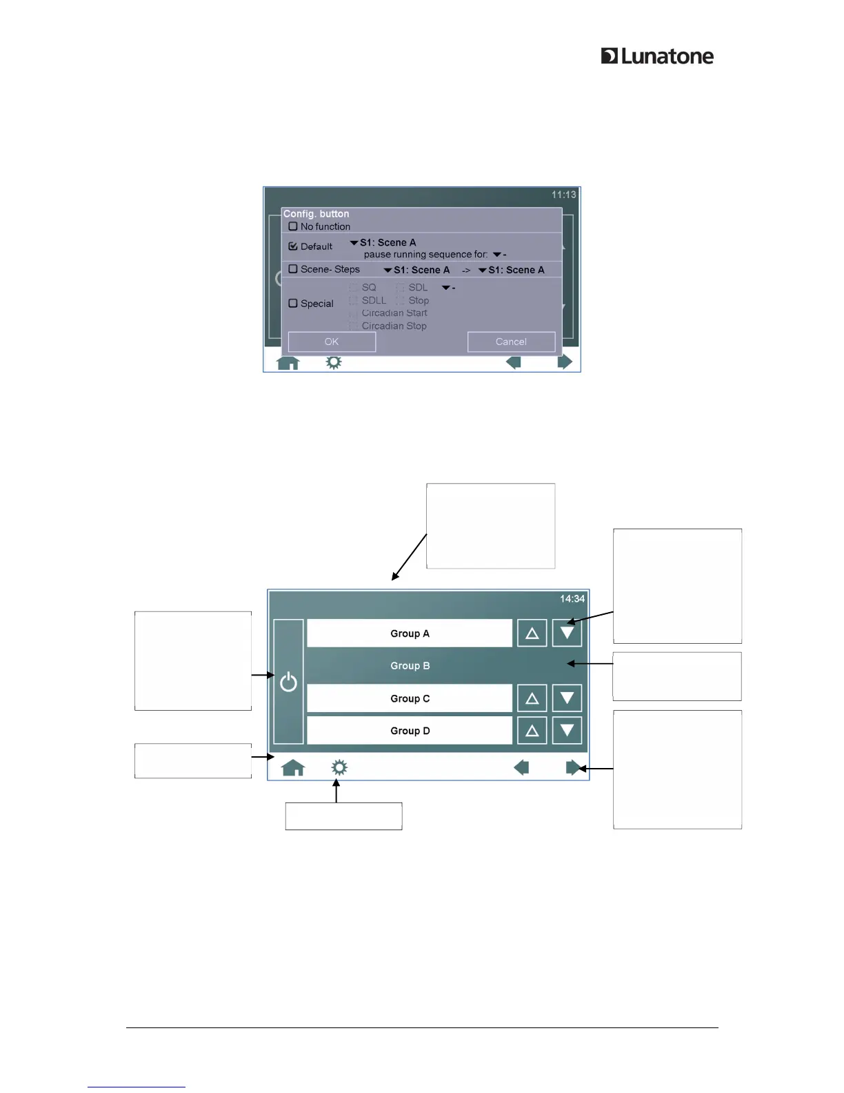 Configuration of Scene-Button (Long Press): Selection of Goto Scene, Cyclic Scene Recall, Start of