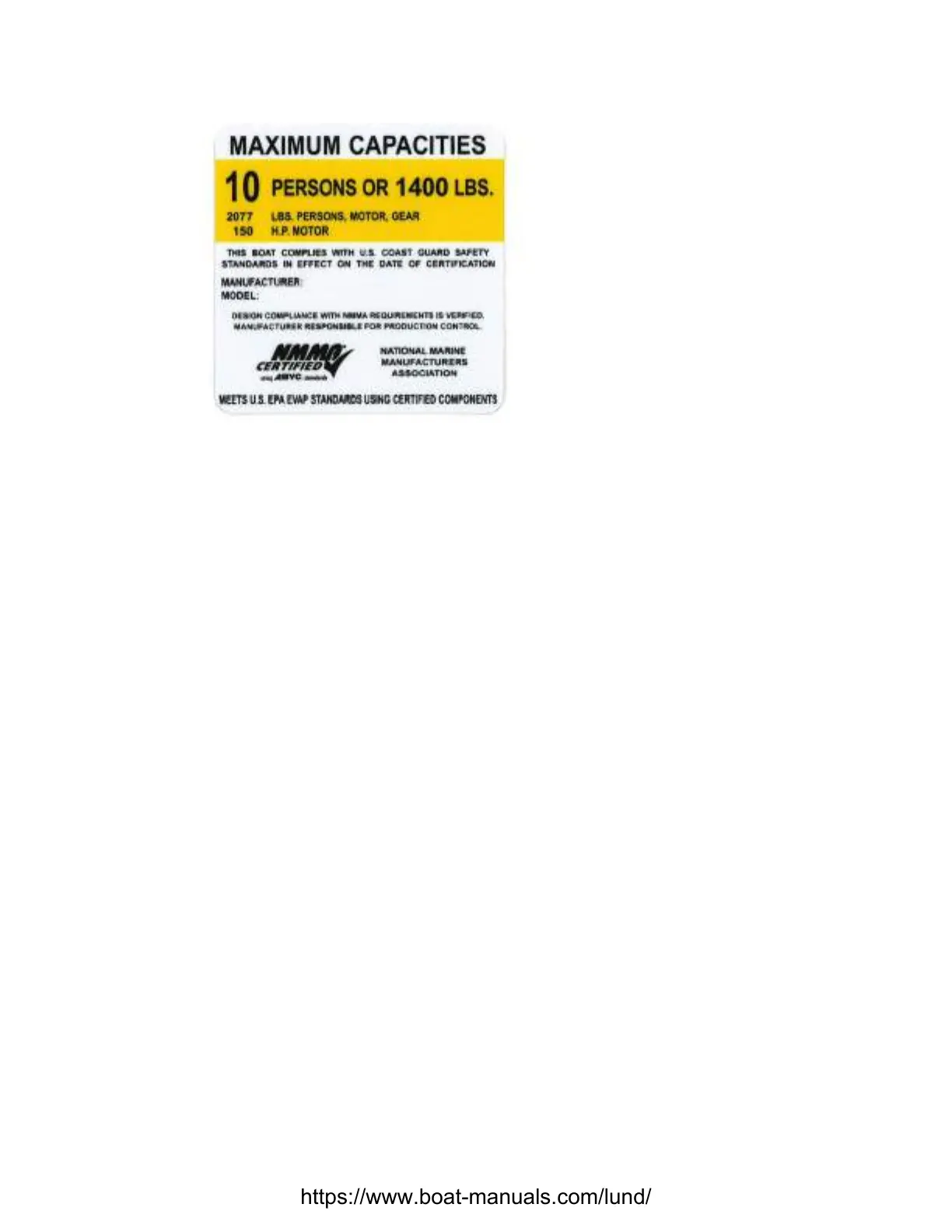 NOTE: the capacity plate on your boat may differ from