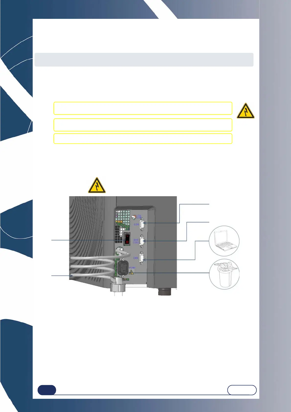 To connect the peripheral equipment to the edger, proceed as follows: