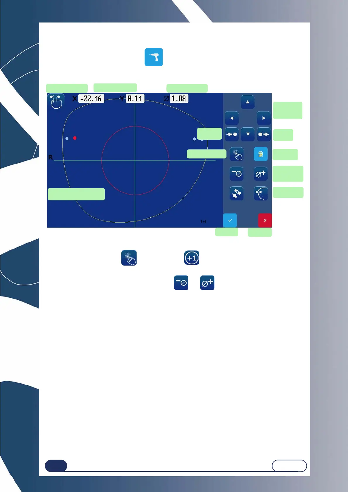 Select the coordinate to be modified (X, Y, Dia.) using the navigation keys.
