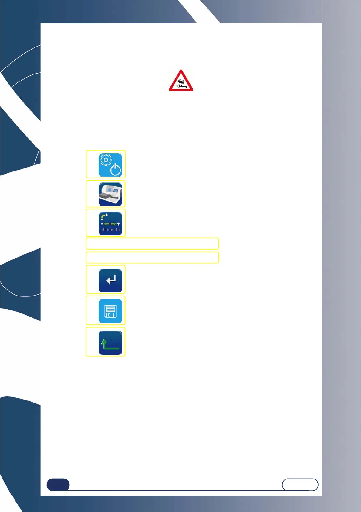 Any modifications of the standard setting values can affect the performance of the machine.