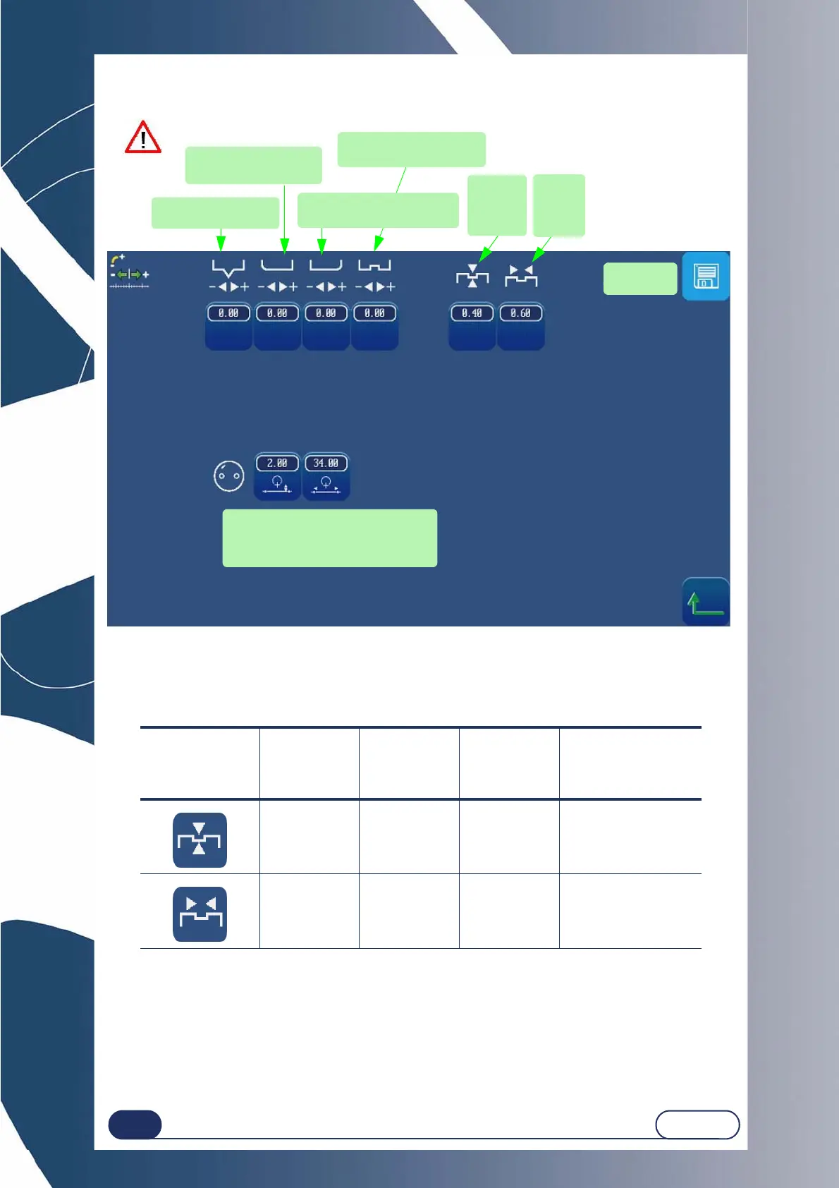 The default values that you wish to be memorised must be within the limits given by Briot. Any value outside the