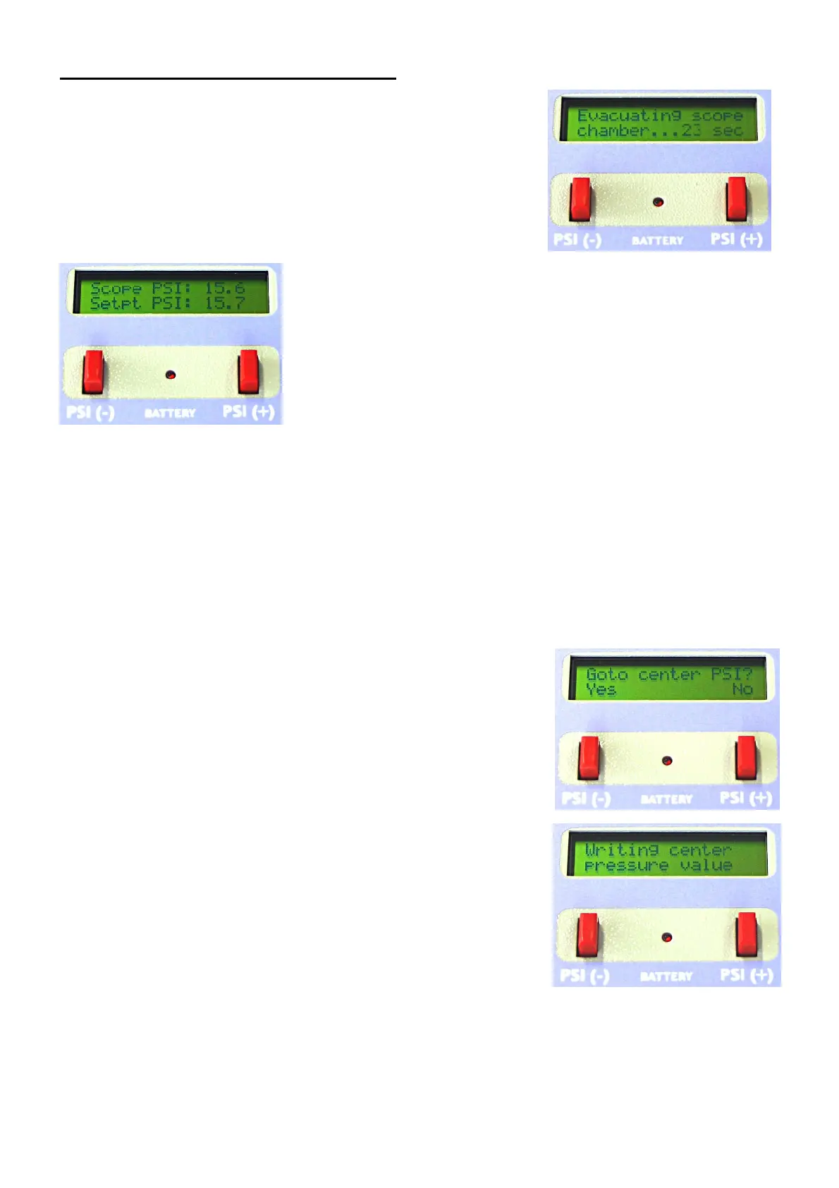 “PSI (+)” buttons at the same time. “Goto center PSI? Yes / No”