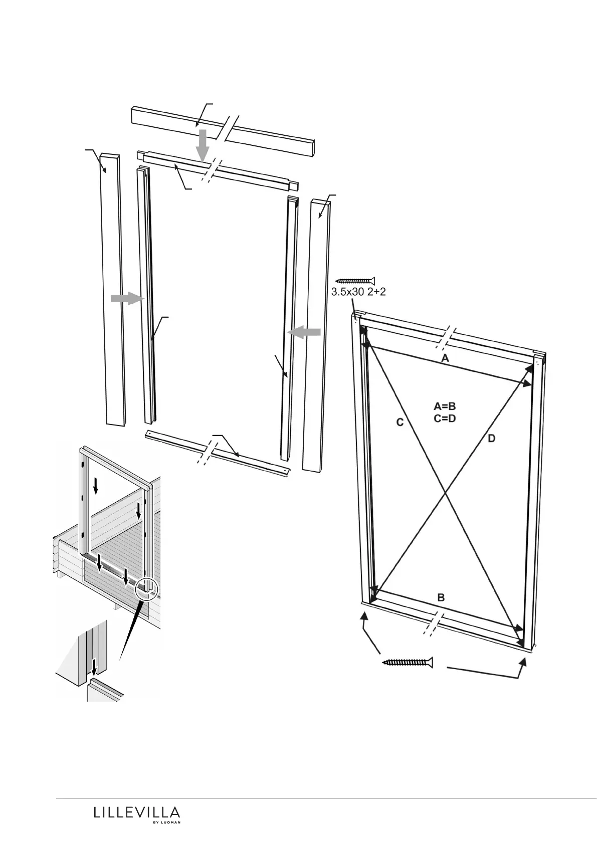 FI Liitä ovenkarmin osat kuvan osoittamalla