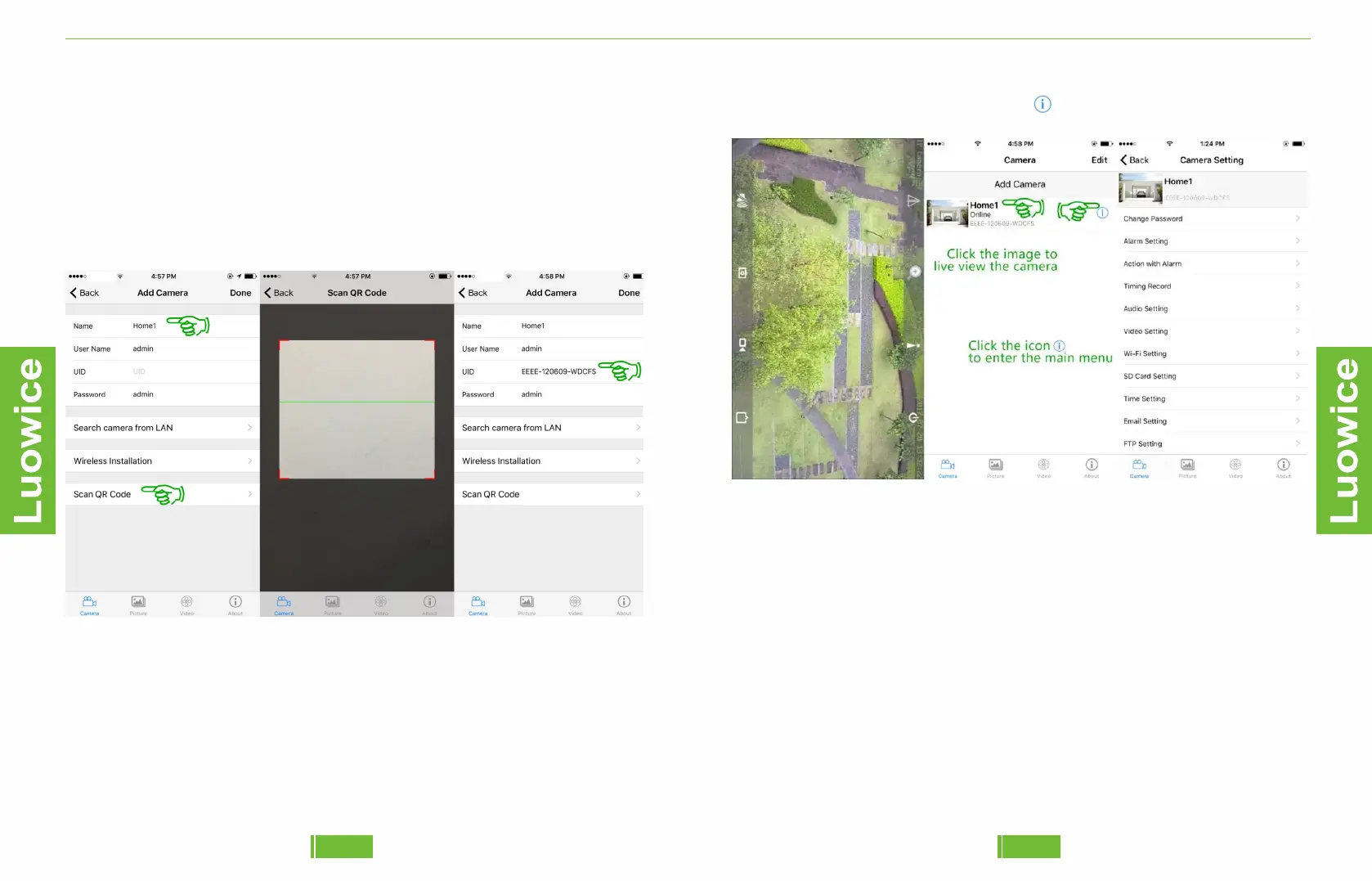 'Scan QR Code', and take your phone near to the camera and scan the QR