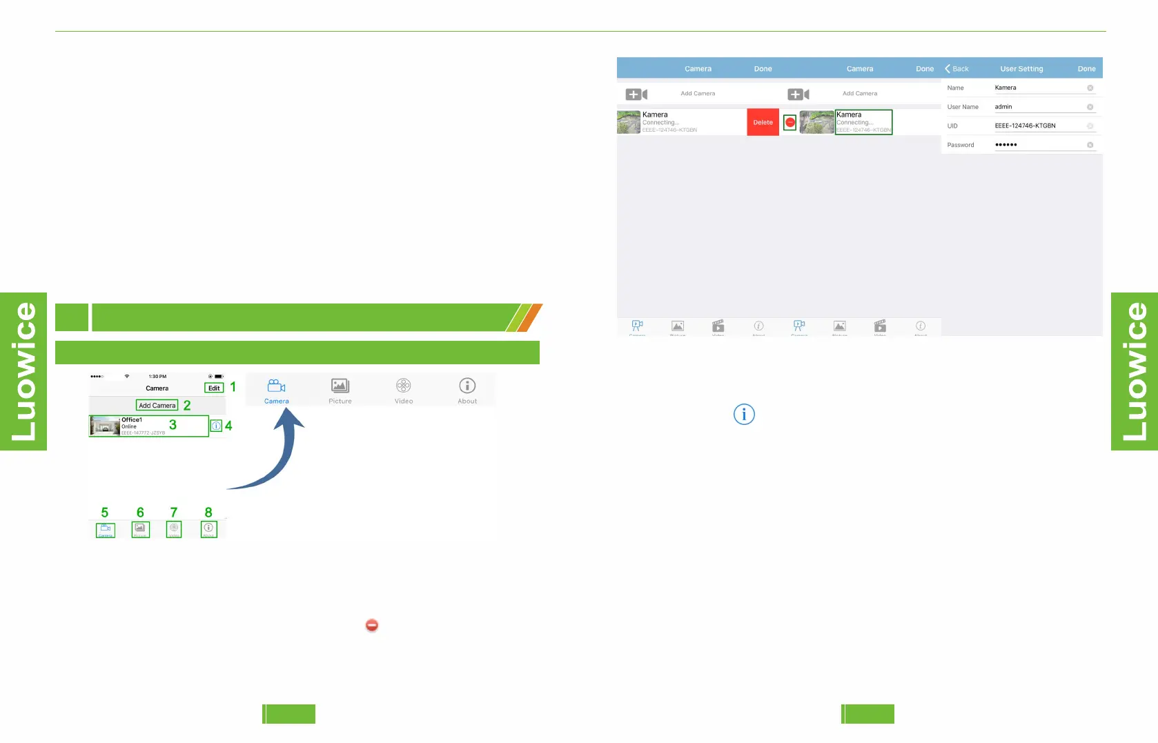 you want to delete the camera, please click the icon, and click 'Delete'.