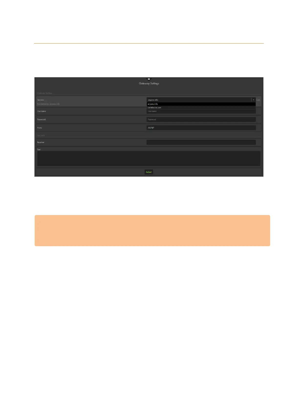 You can select between three third-party providers: “anysms.info” and “cm-