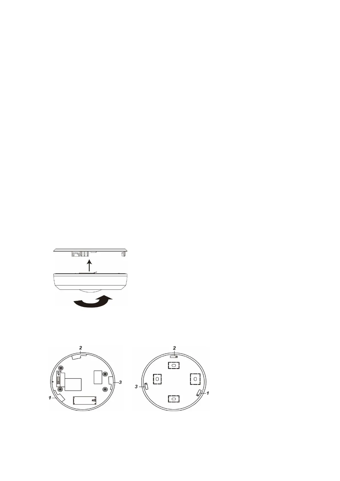 Insert the installation hooks (7) into the mounting holes (6) and turn the 360° PIR
