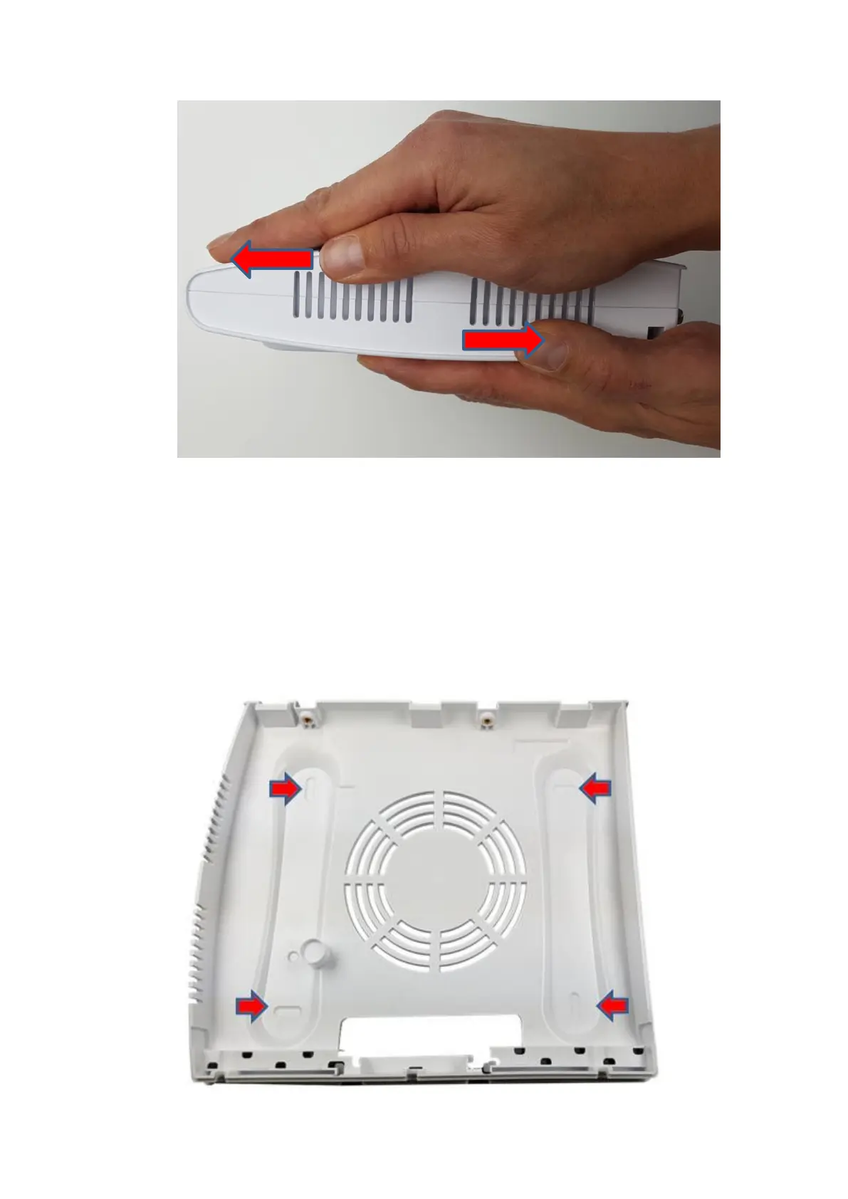 4. Drill through the indicated points at the back of the alarm panel. Use the