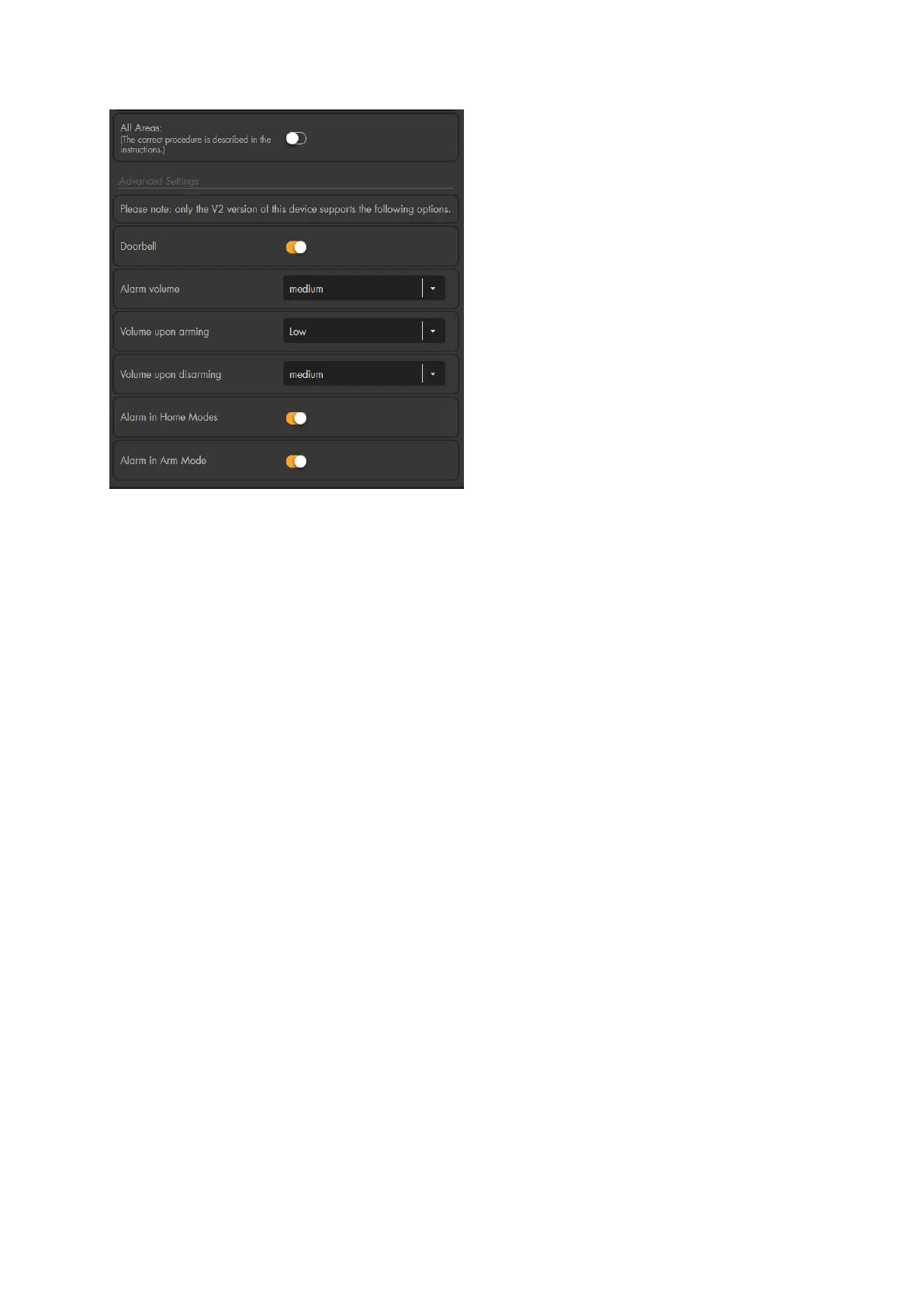 In the menu “Siren settings” “Sound settings” “Area settings” “Doorbell” ”All
