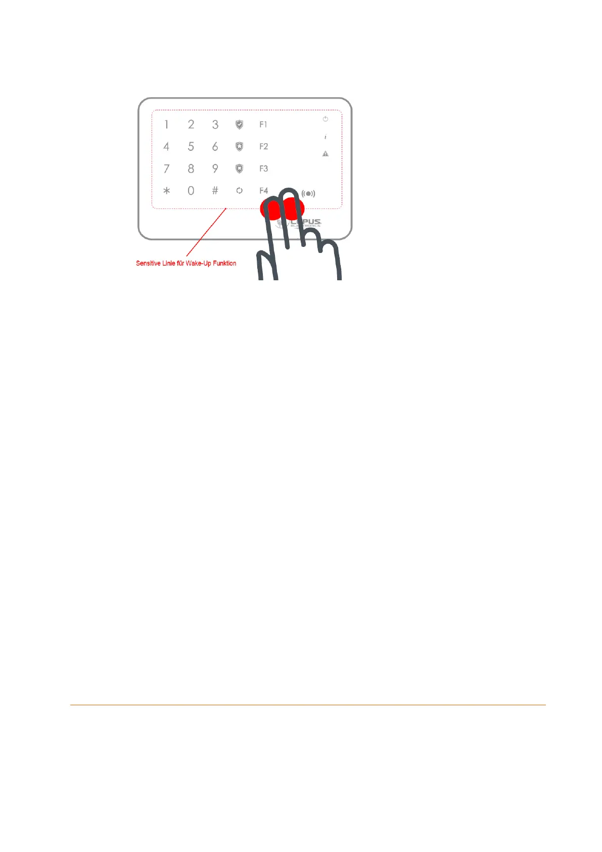 o If the tampering contact opens, the Power LED of the keypad lights up and